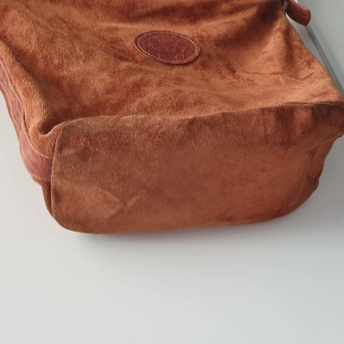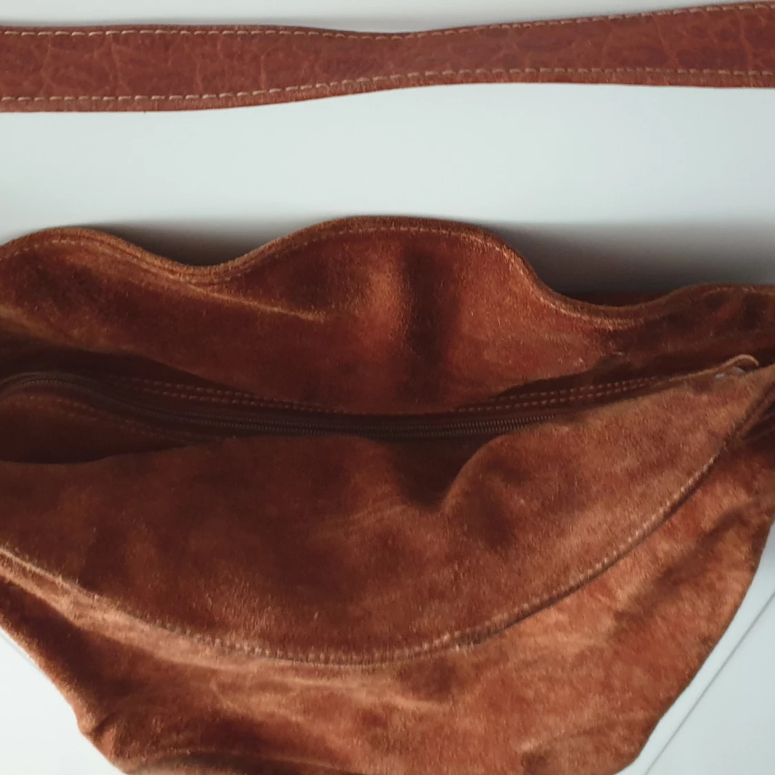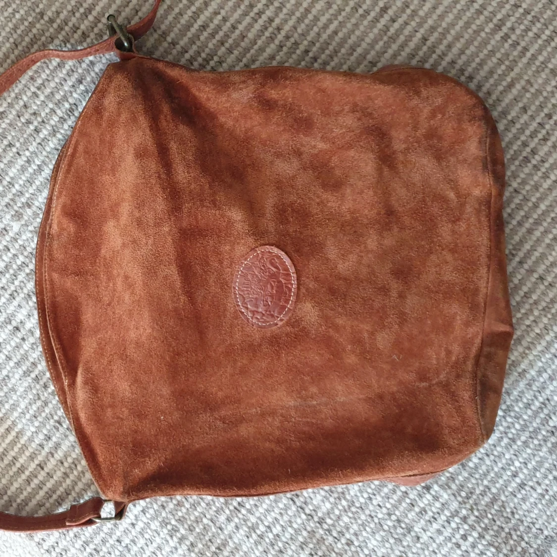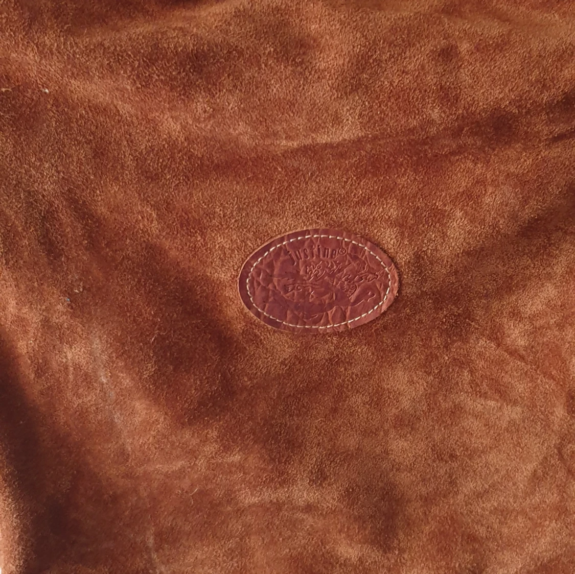 Brun axelväska i mjuk mocka från Justine. Väskan har en enkel, rymlig design med lång axelrem och dragkedja upptill. Ovalt logomärke framtill i samma färg. Perfekt för dig som gillar vintagevibbar och naturliga material. För fler bilder, besök min Vinted sida 📷 Längd 36cm, bredd 36cm, botten 18cm, axelband 80cm.