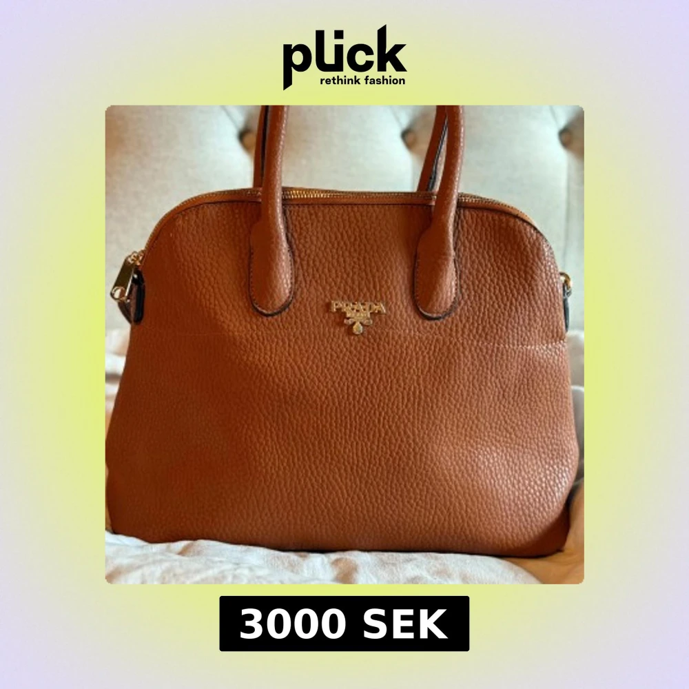Säljer en snygg brun vintage handväska från Prada i skinn med guldfärgade detaljer och dragkedja. Väskan har både handtag och axelrem, vilket gör den enkel att bära på olika sätt. Perfekt för dig som vill ha en klassisk och stilren accessoar. Väskan är knappt använd då mamma köpte den i USA för många år sen men aldrig fått användning för den.