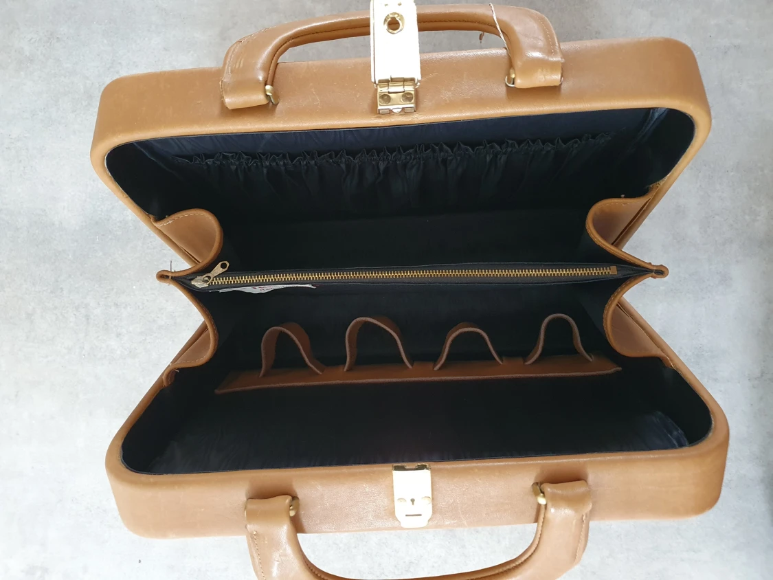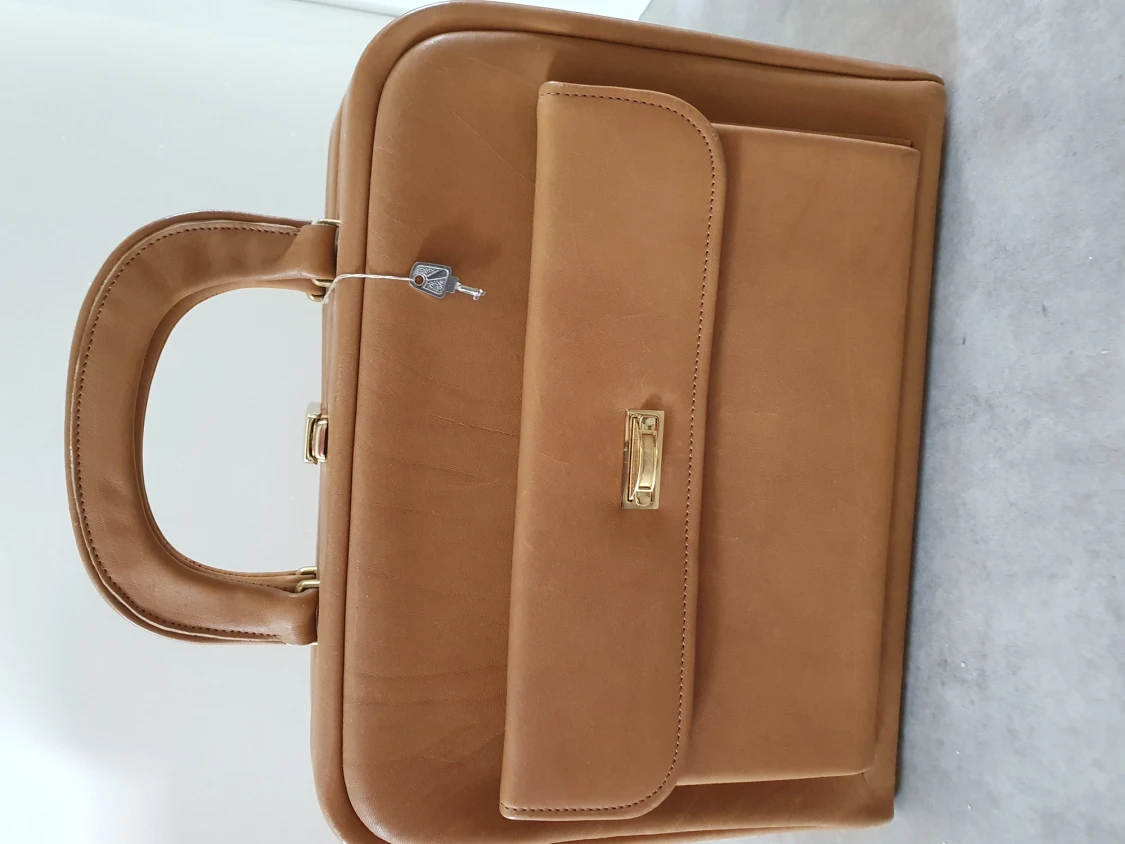 Fin vintage skinnväska från finska märket Nateva. Mycket bra skick och med nyckel till det lilla låset på väskan.