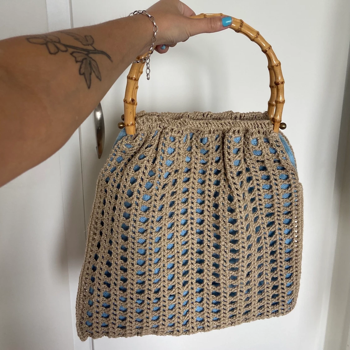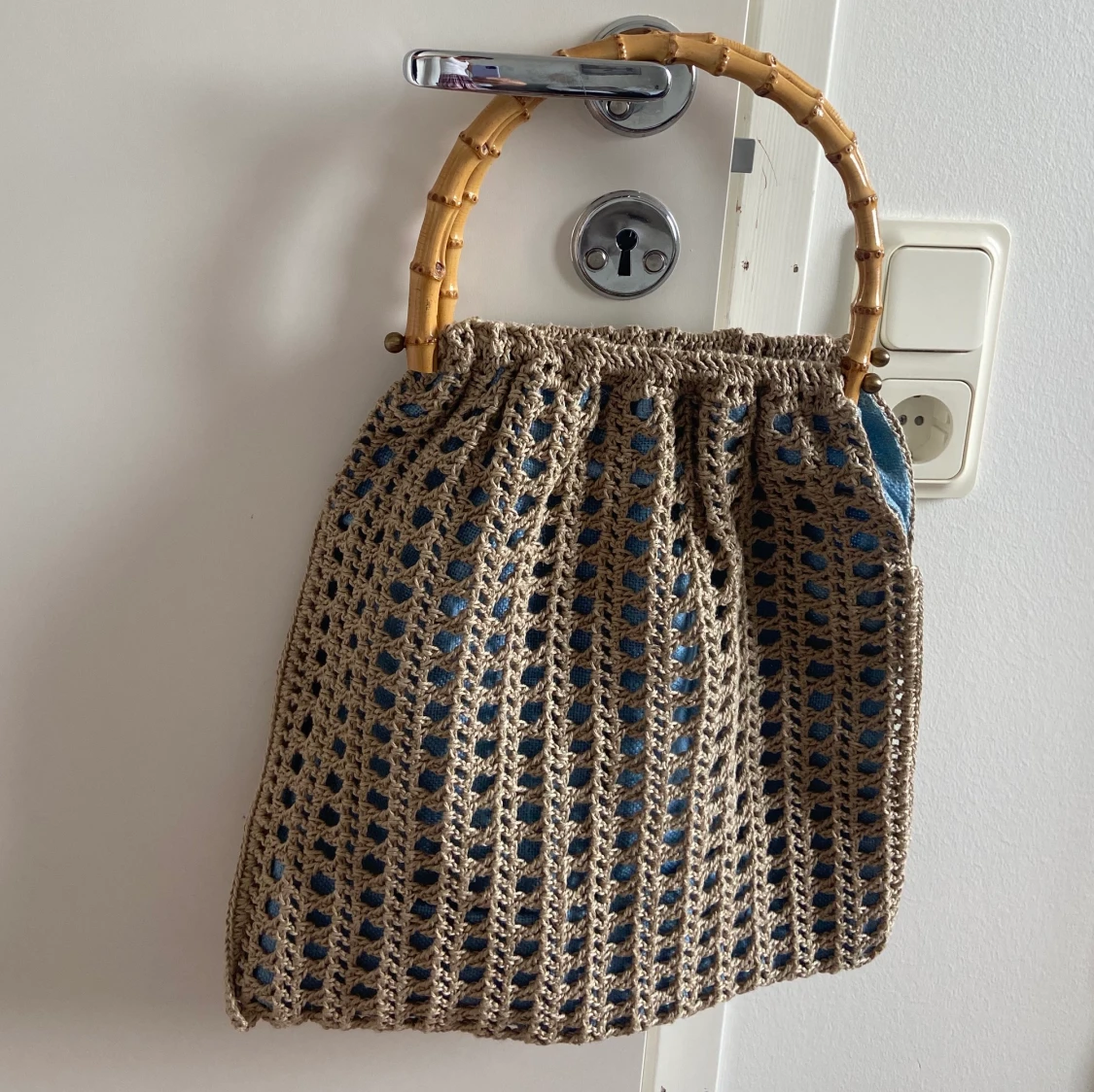 Säljer min fina väska jag köpt i vintageaffäe i lite rotting- stil! pga använder inte tillräckligt mycket💙 väskan är väldigt rymlig!
