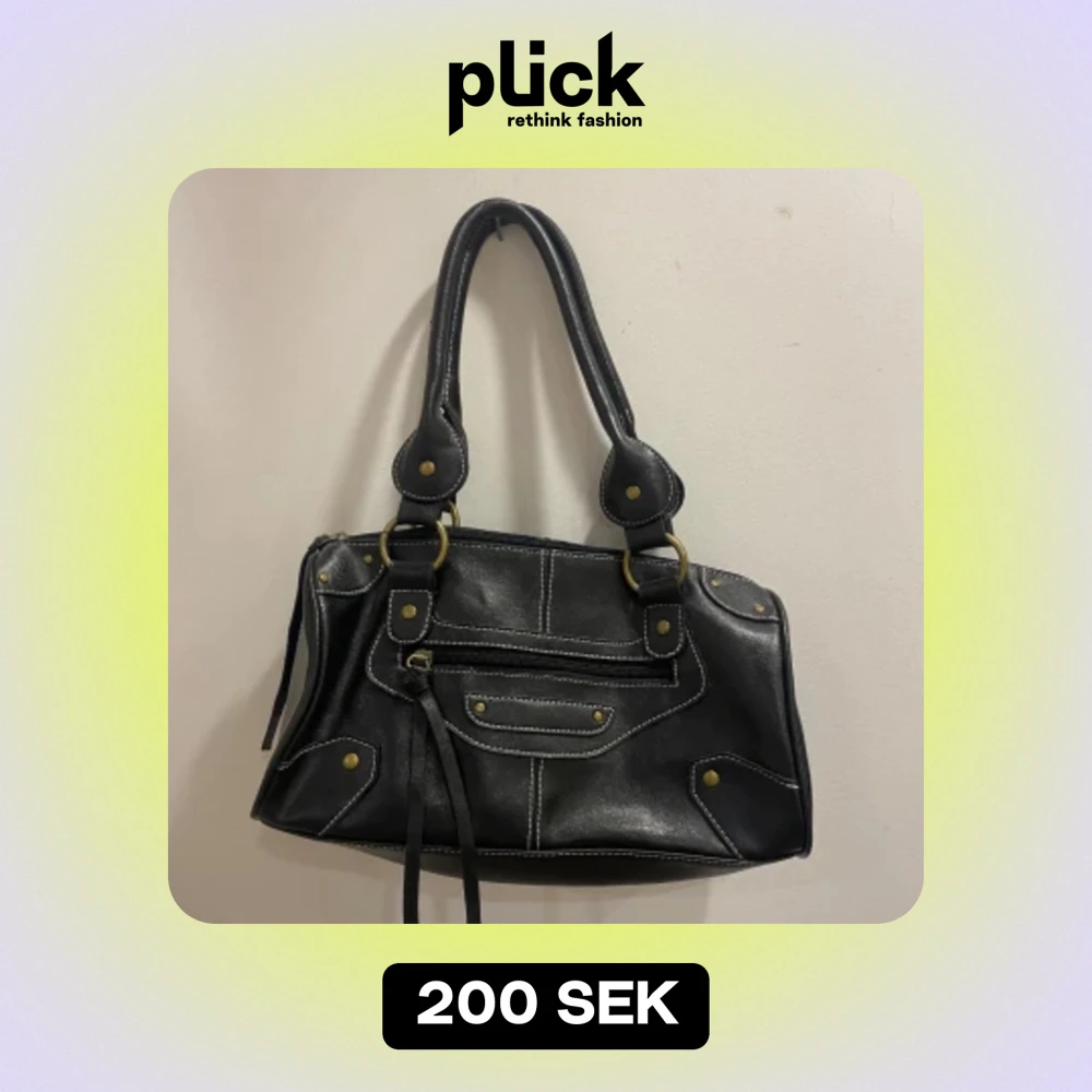 Svart vintage-väska. Ganska korta band så funkar bättre att styla genom att hålla den💞