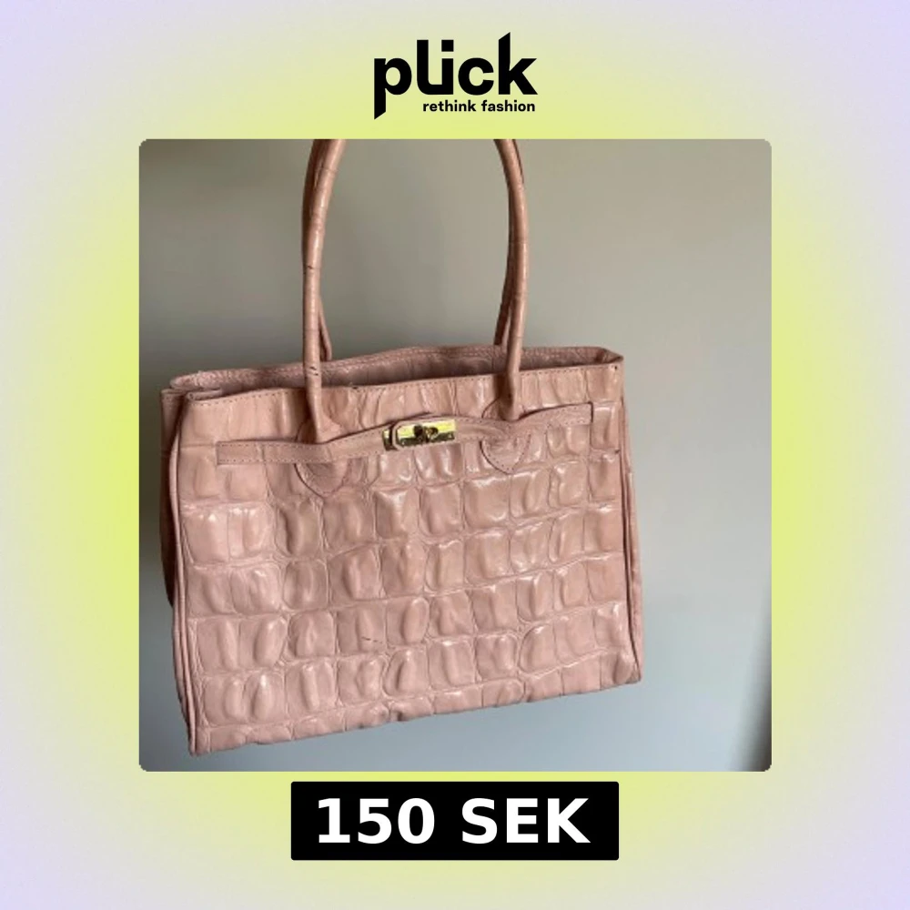 Säljer en ljusrosa handväska i krokopräglat skinn. Väskan har två handtag, guldfärgat lås och rymligt innerfack med dragkedja. Perfekt för dig som gillar statement-accessoarer och vill ha plats för allt du behöver🥰vet tyvärr inte märket
