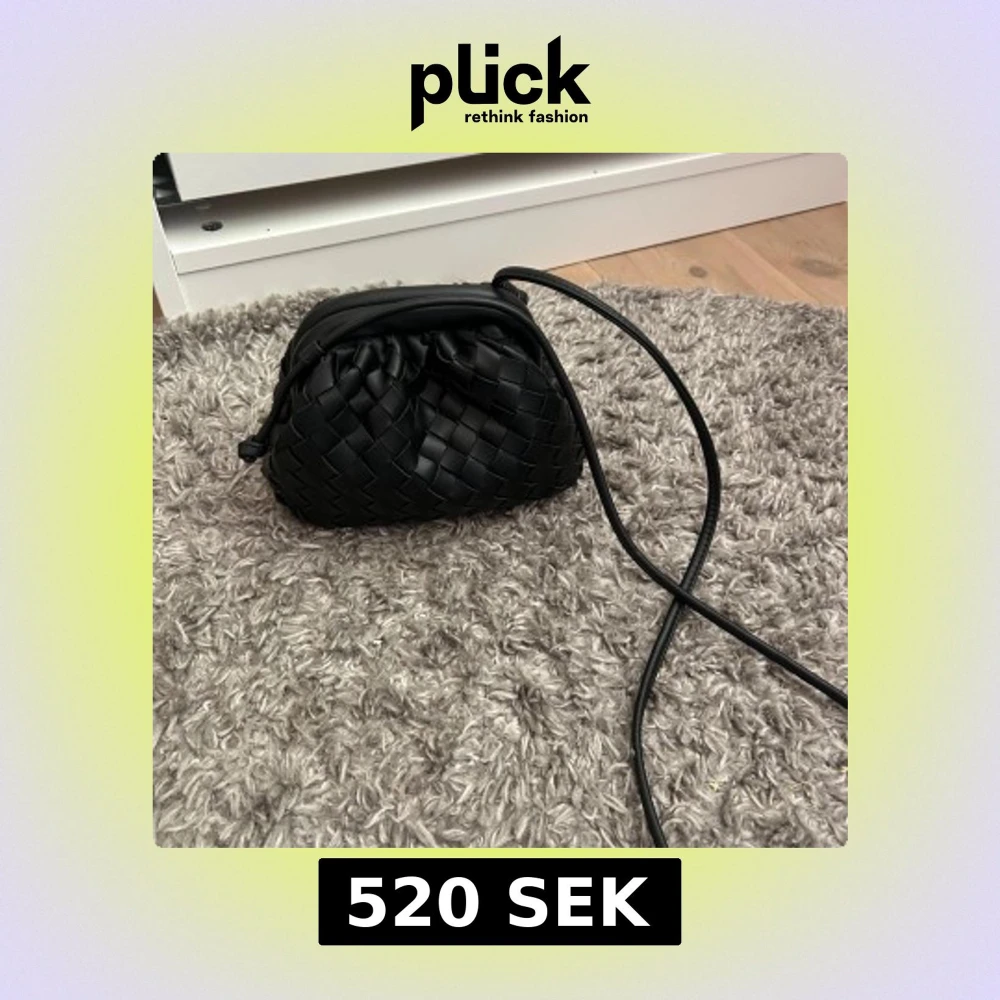 Flätad clutch väska i mycket bra skick, bandet går att reglera som ni ser på bild 3. Nypris är 599