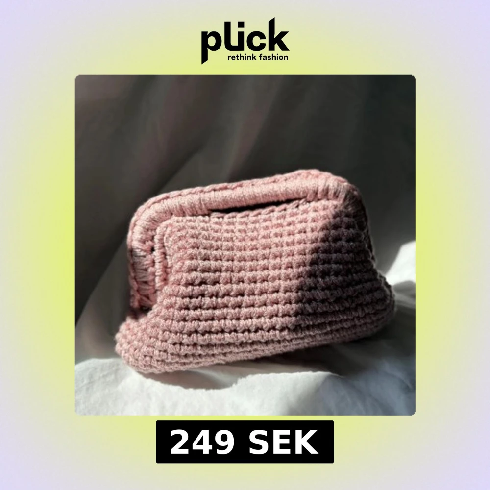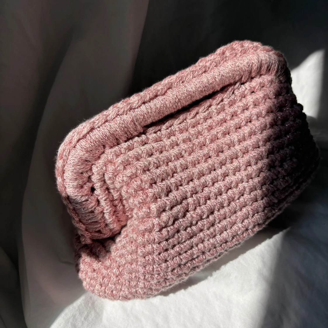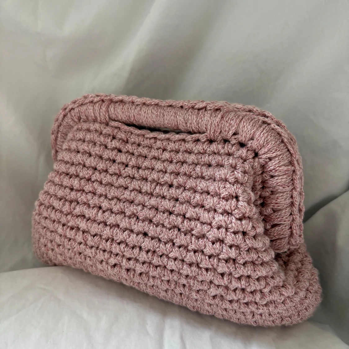 Virkad clutch i en härlig glittrig nyans av rosa. Mått B24xH18. @design.by.bela