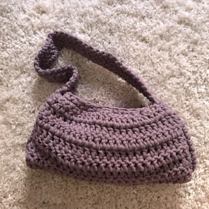 Handgjord lila virkad väska. Ca 30 x 15 cm