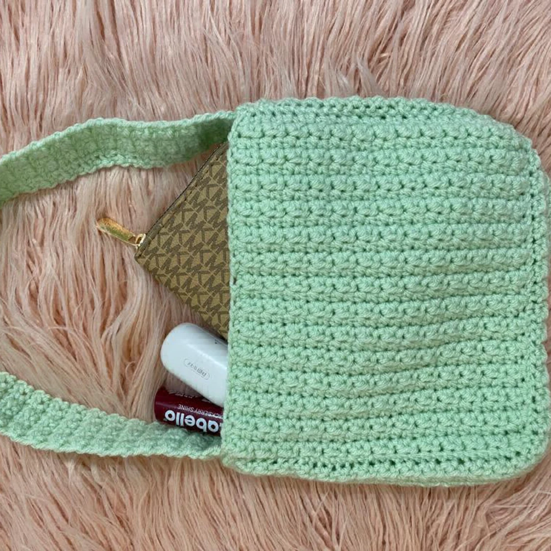 Denna fina väskan har jag virkat. Du kan få plats med en mobil, hörlurar, nycklar, små saker. Men den årkar inte med något tungt. För mer information kontakta mig. ❤️✨