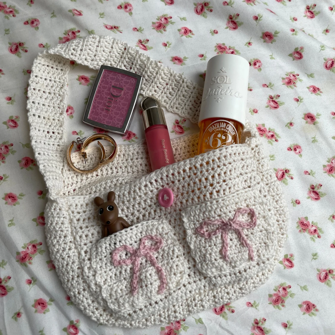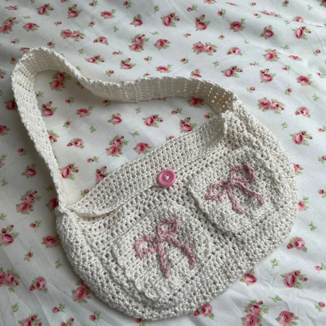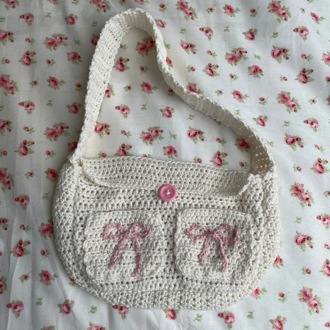 Söt virkad handväska 💞 perfekt för daglig användning och små grejer, hela är gjord av Cotton garn och är välgjord (denna väska är lite mindre så att man vet) 🌸