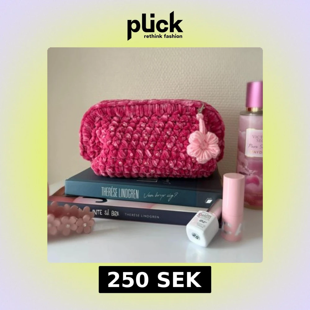 Virkad necessär - Kelly - 🩷 En handgjord necessär med ihopfälld bar ram 🩷 Virkad i ett härligt chenille garn 🩷 Denna har diamanter/kristaller 💎 🩷 Storlek M: Bred ca 17 cm - Lång ca 22 cm 🩷 Virkad av mig @virkningbynadja (Kolla min profil för fler färger) Kolla gärna in min Instagram för mer, @virkningbynadja ✨