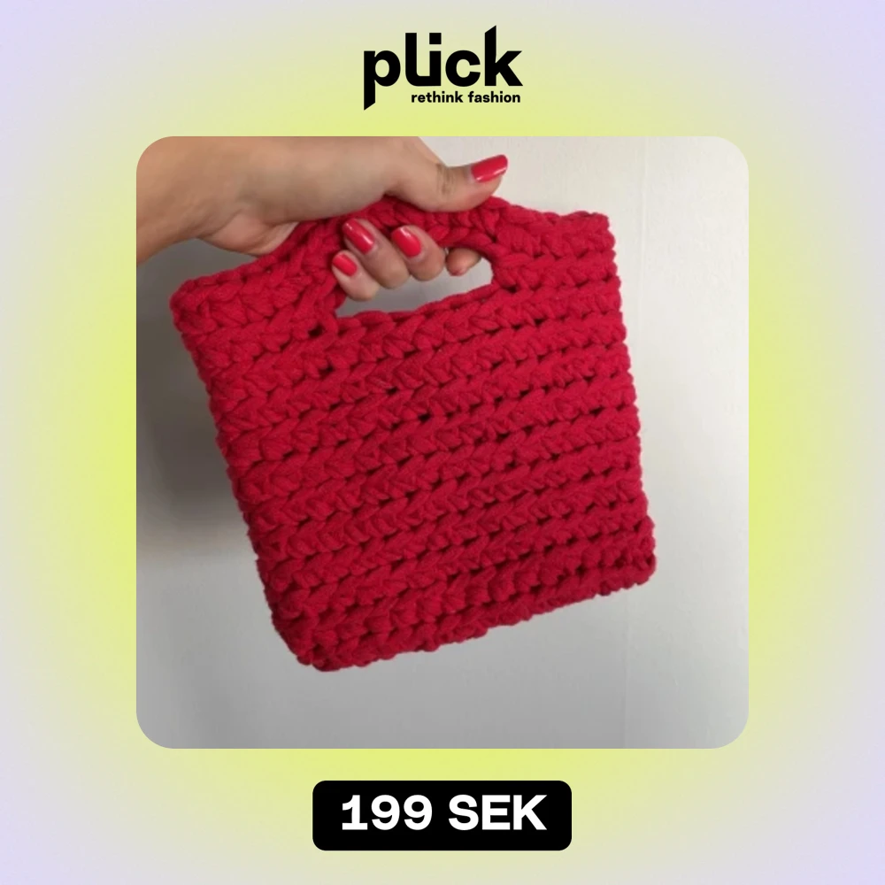 Handgjord väska virkad i slittåligt ekologiskt bomullsgarn. Mått: 19x18 cm