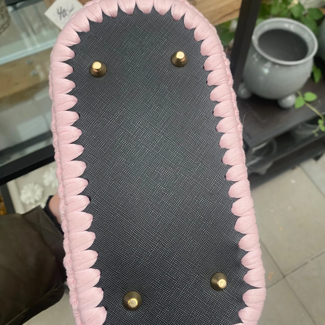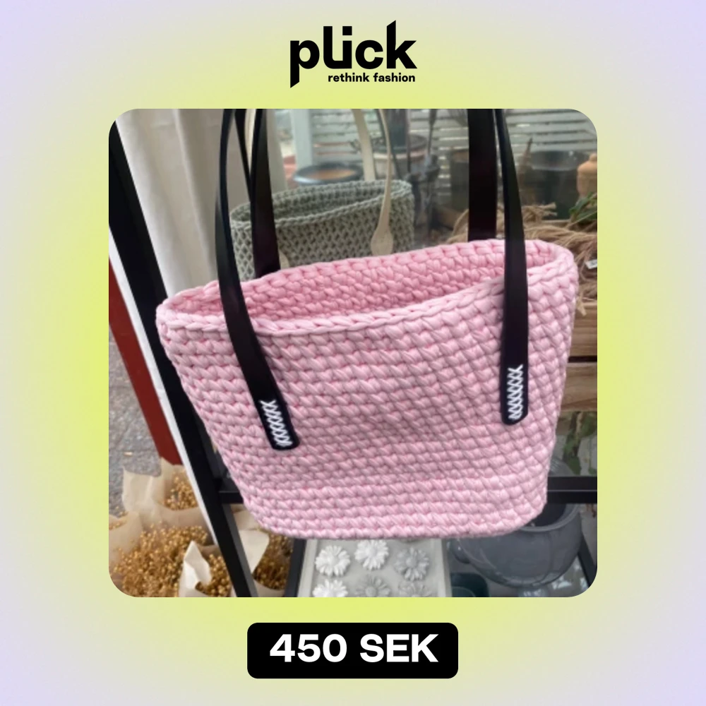 Säljer en superfin rosa virkad väska med svarta läder handtag. Den är perfekt för sommarens alla äventyr och har en stabil läder botten med små metallfötter. Väskan är både snygg och praktisk!