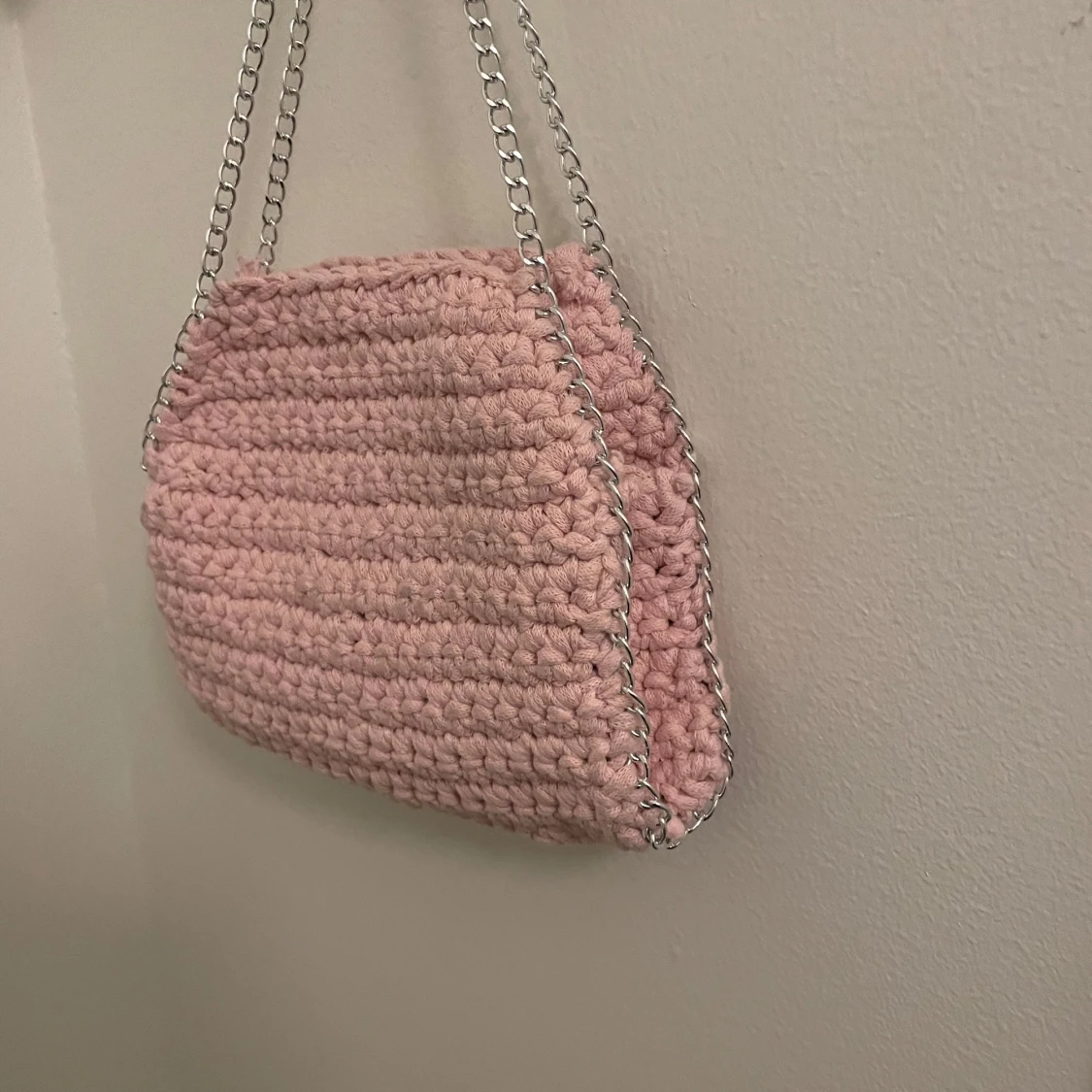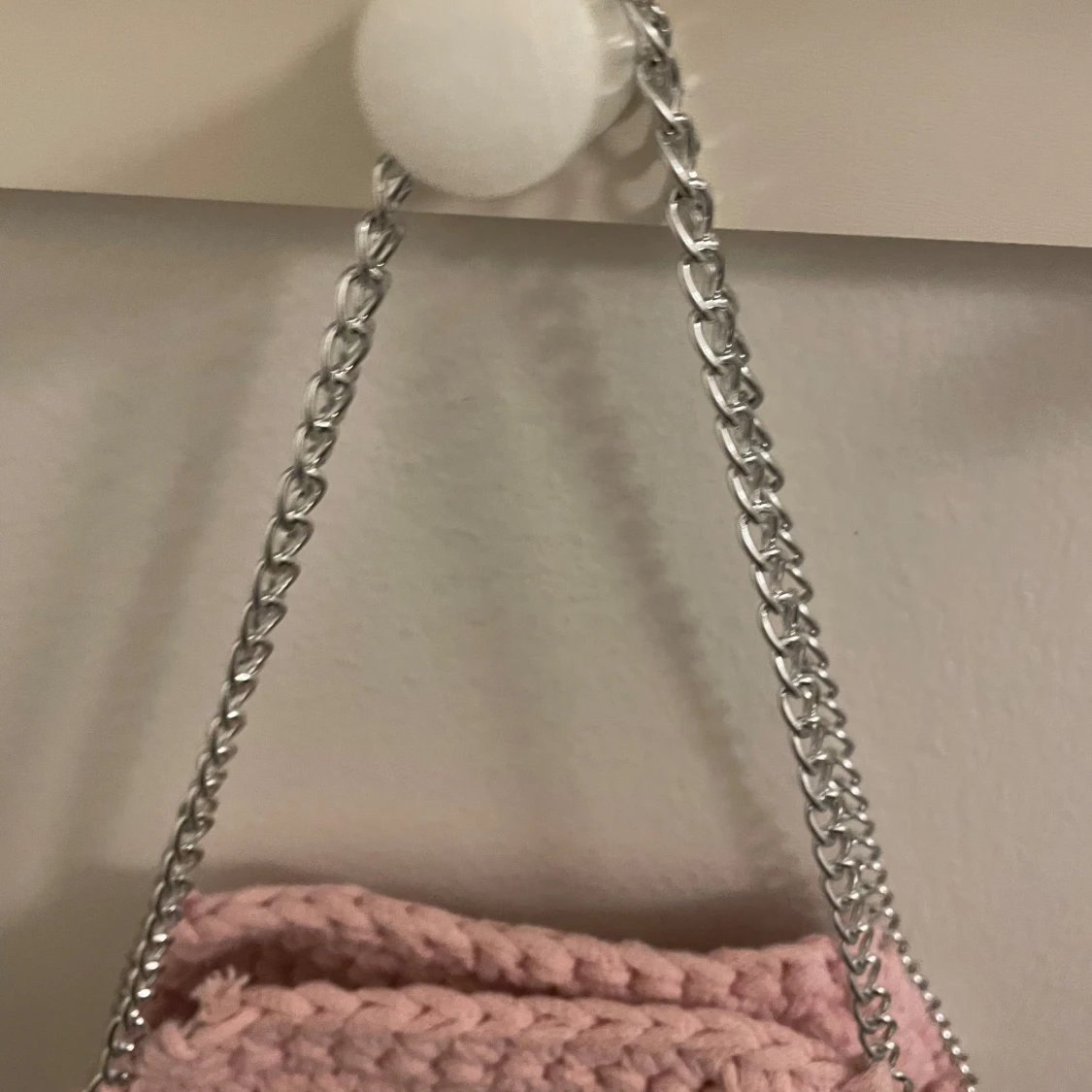 Egenvirkad väska som liknar Stella McCartney väskan. Den är ljusrosa med en silvrig kedja och har ganska bra med utrymme i sig. Bra skick. Skriv gärna om ni har några frågor💗