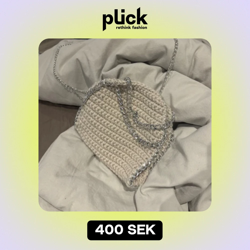 Stella McCartney liknande väska jag virkat själv Naturvit/beige med silvrig kedja