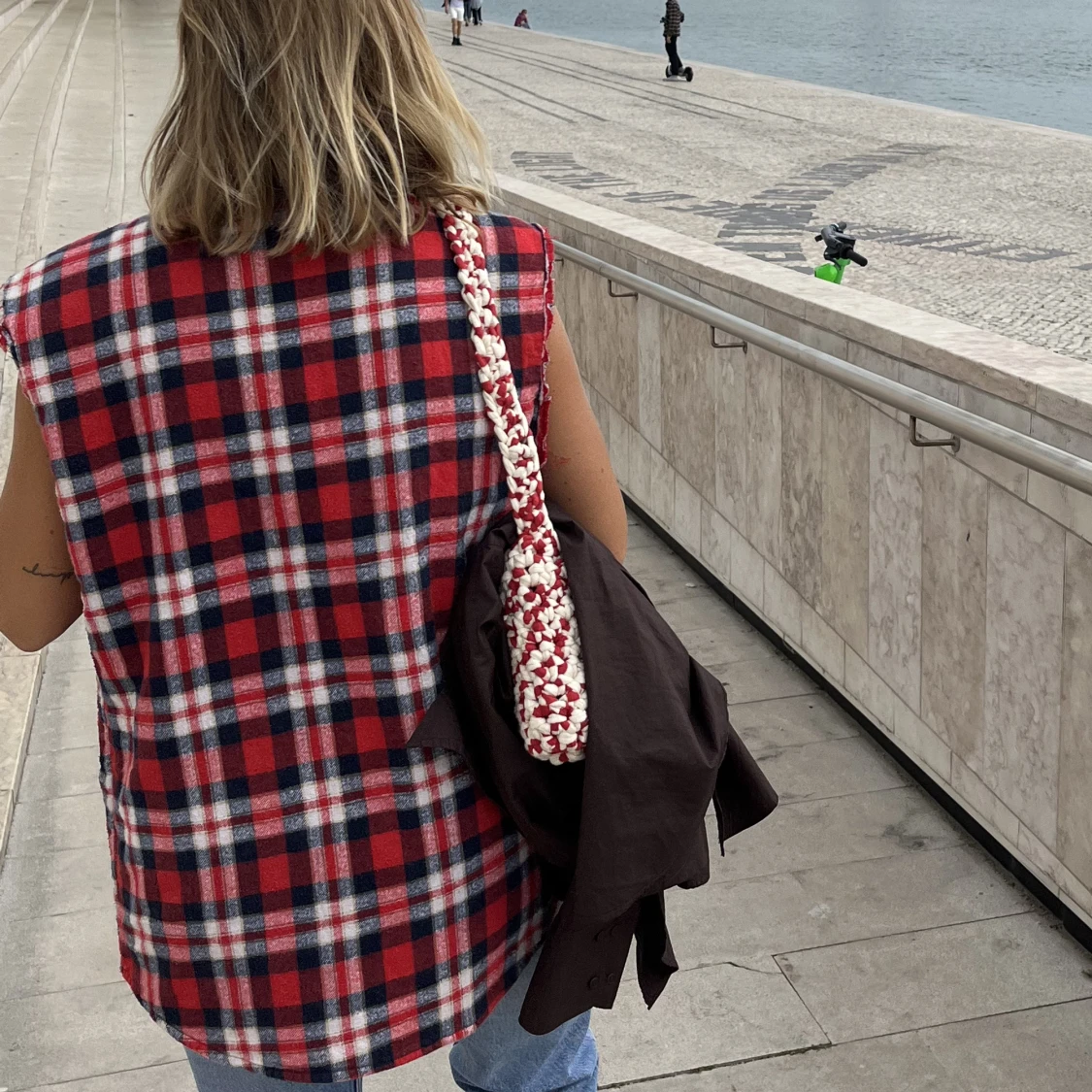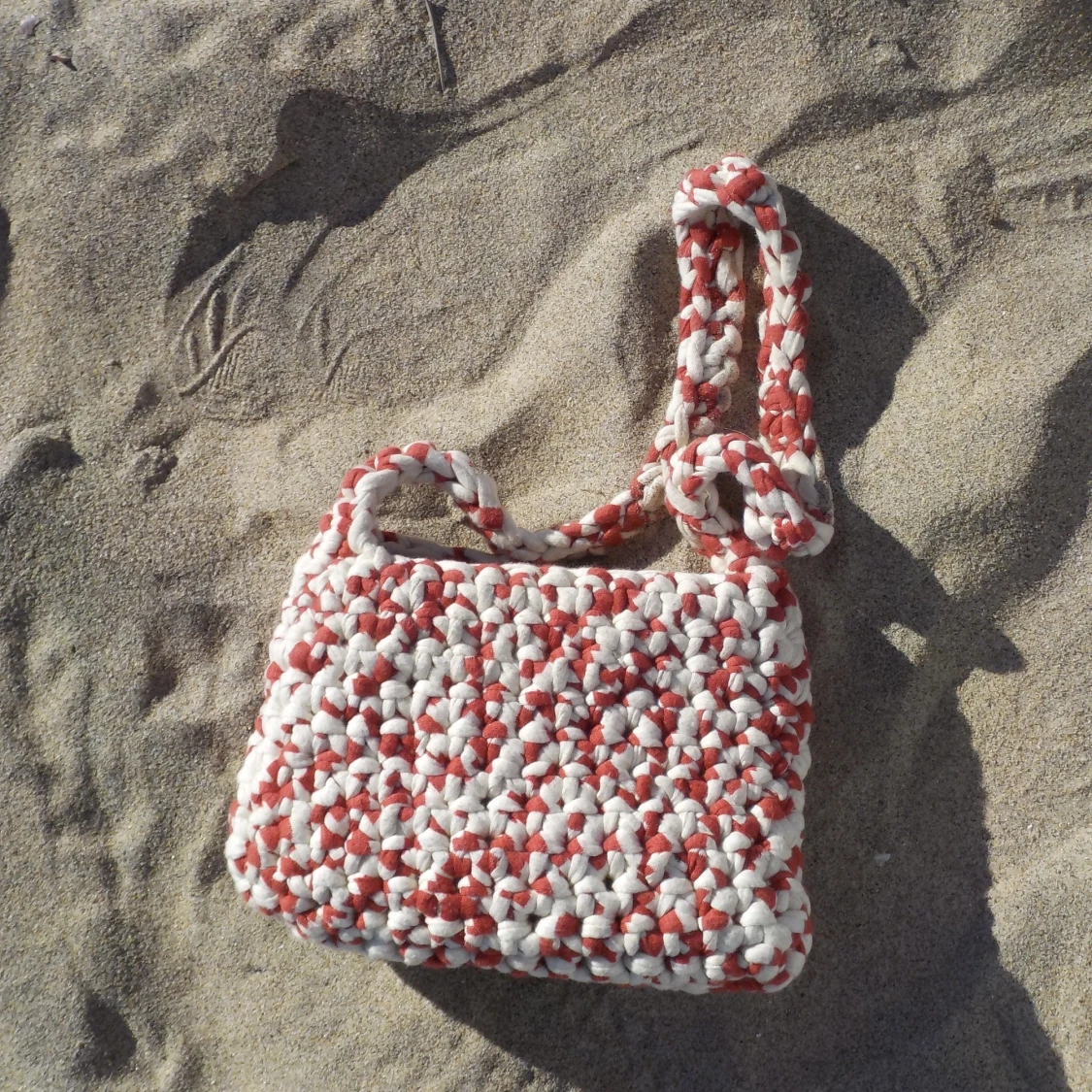 Viskar väska i kraftigt garn. Plats för mobil, plånbok och annat