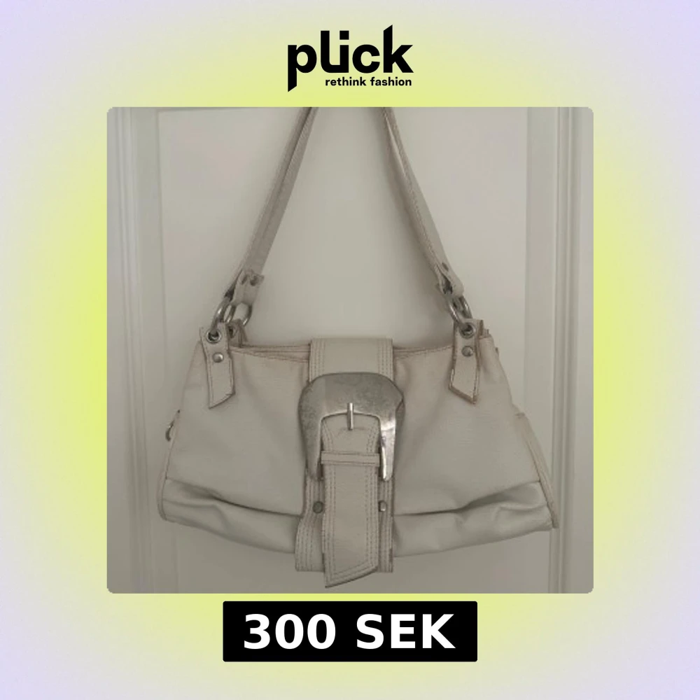 vit axelväska med silverfärgade detaljer..