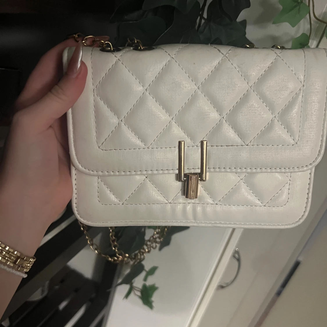 Har precis köpt denna fina vita axelväskan ifrån vinted. Säljer pga att den inte kommer komma till användning. Men hoppas andra kan njuta av den mer! Den är lite fläckig, men går säkert bort om man skrubbar rent den. Ställ gärna frågor ifall ni har några så svarar jag så snabbt jag kan!!🤗💕