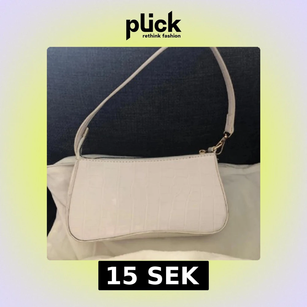 Snygg vit axelväska med crocopräglat mönster och guldfärgad dragkedja. 🫶🏼