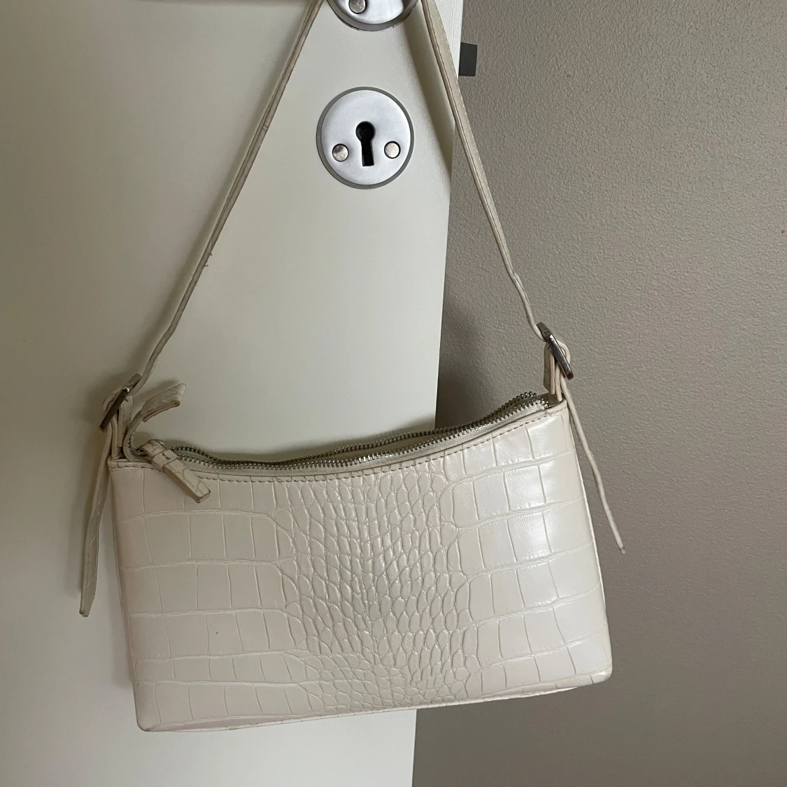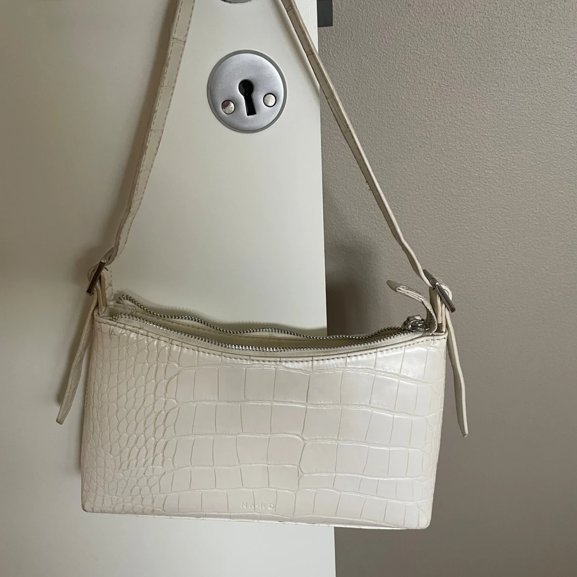 Säljer en stilren vit axelväska från NA-KD. Väskan har en smal axelrem och stängs med dragkedja. Perfekt storlek för det viktigaste och ger en clean vibe till din outfit.