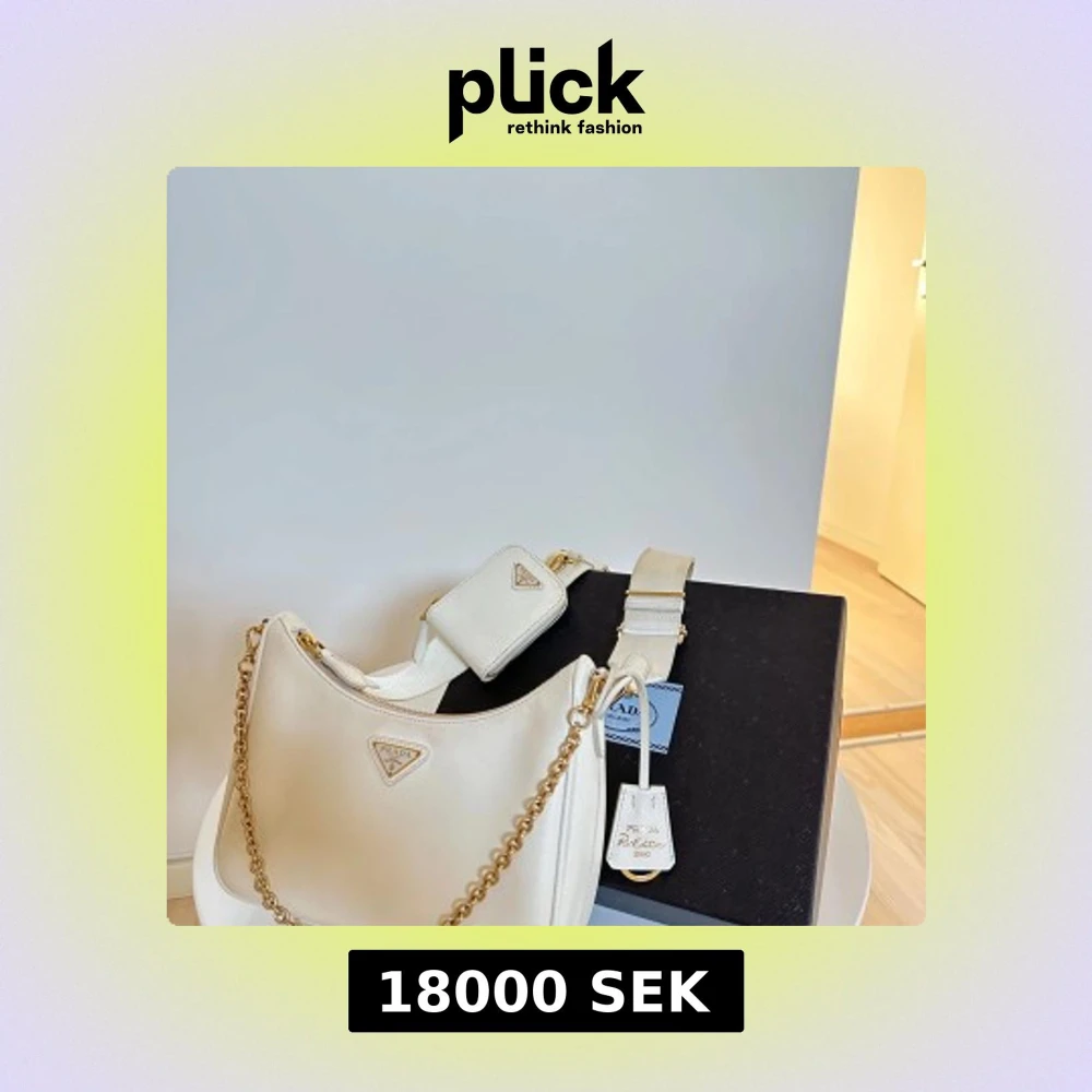 Elegant vit axelväska från Prada med guldfärgade kedjedetaljer och matchande axelrem. Väskan har en stilren design med en liten tillhörande plånbok. Perfekt för att ge en lyxig touch till din outfit. Kvitto och kartong finns.