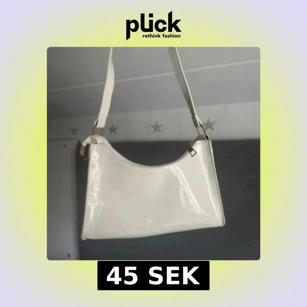 Snygg vit axelväska med stilren och enkel design. Väskan har en glansig finish och justerbart axelband. Perfekt storlek för det viktigaste och passar till många olika outfits.