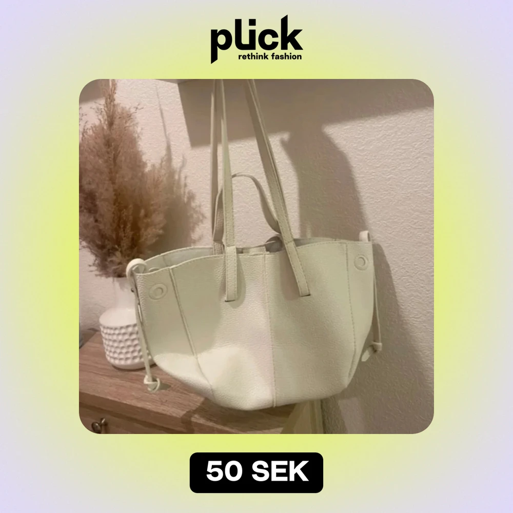 Snygg vit axelväska i skinn med stilren design. Väskan har två långa handtag och en praktisk storlek för vardagsbruk. Perfekt för att bära med sig det nödvändigaste med stil.