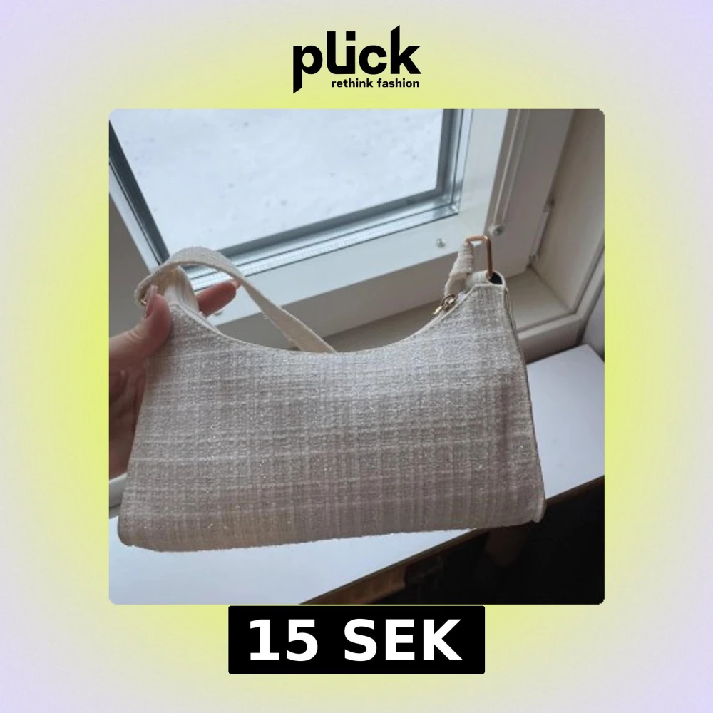 Snygg vit axelväska med en glittrig yta som ger en elegant touch. Väskan har en enkel design med en axelrem och dragkedja för säker förvaring. Perfekt för att lyfta din outfit med lite extra glamour. Aldrig använd