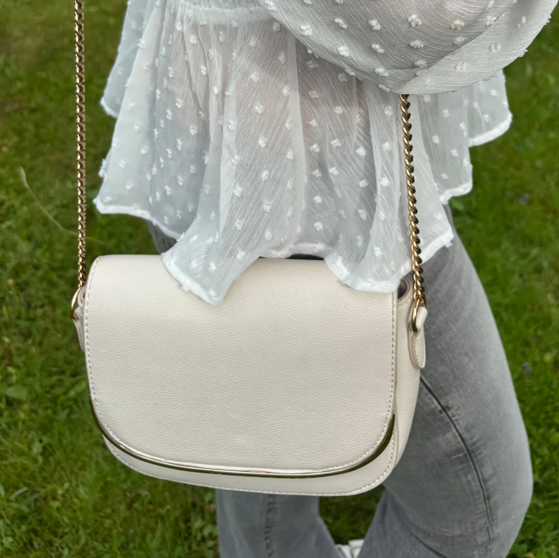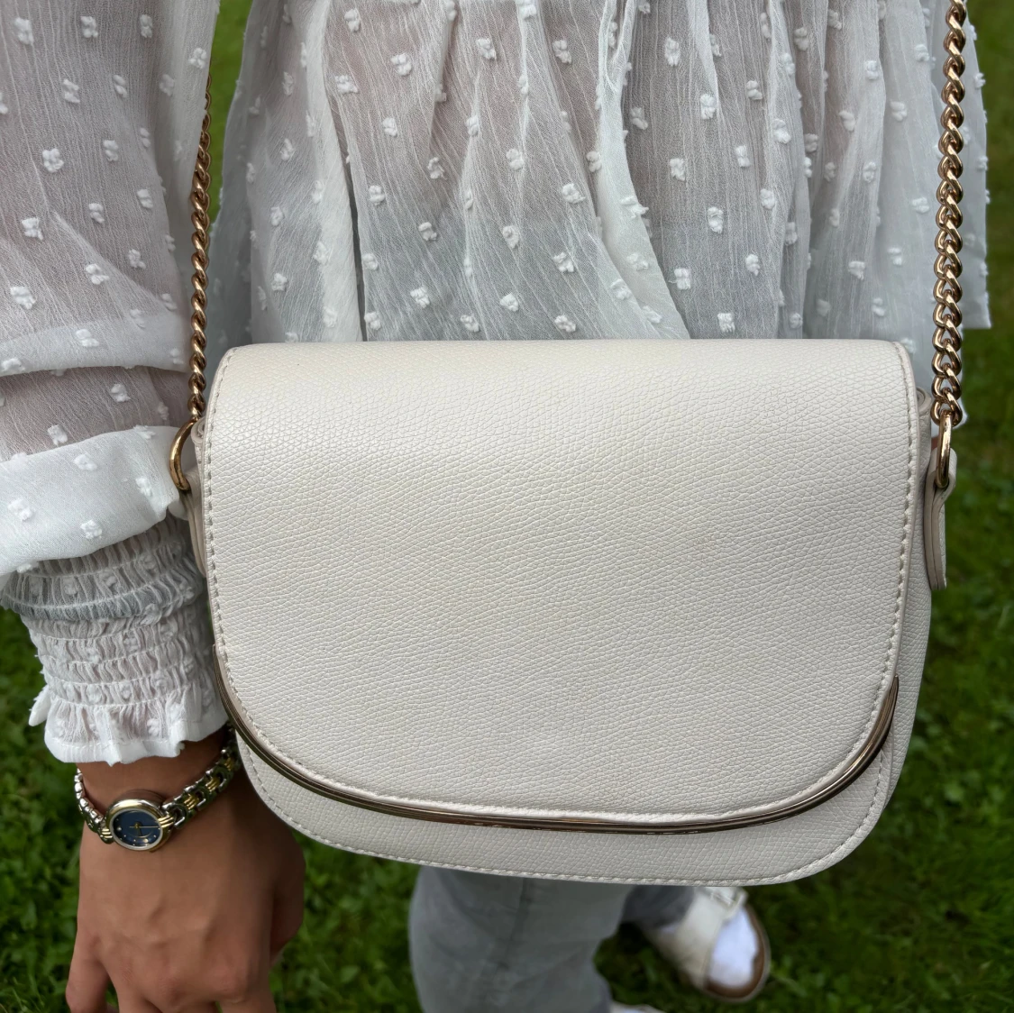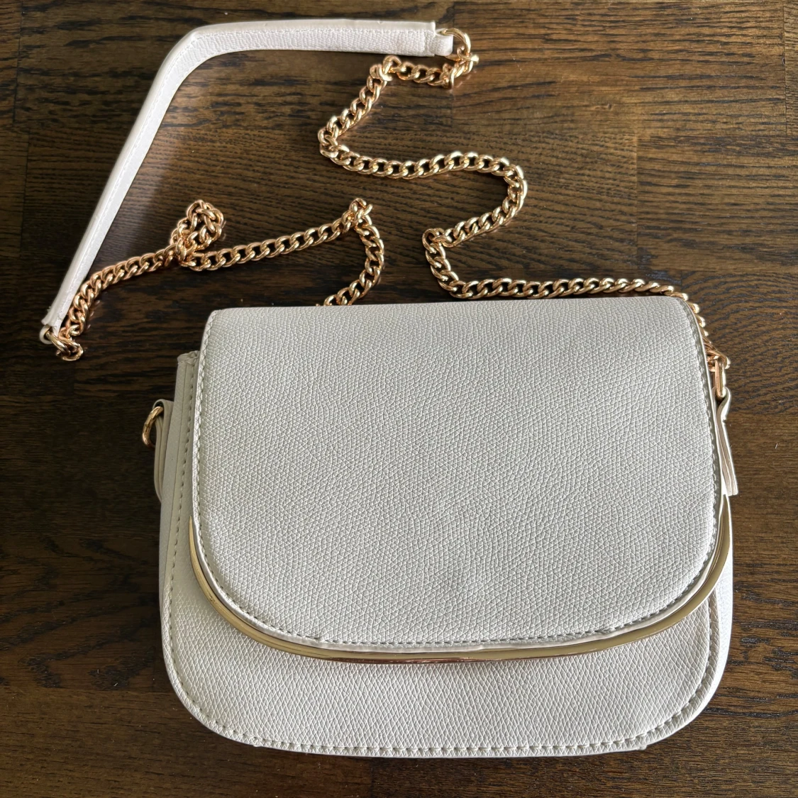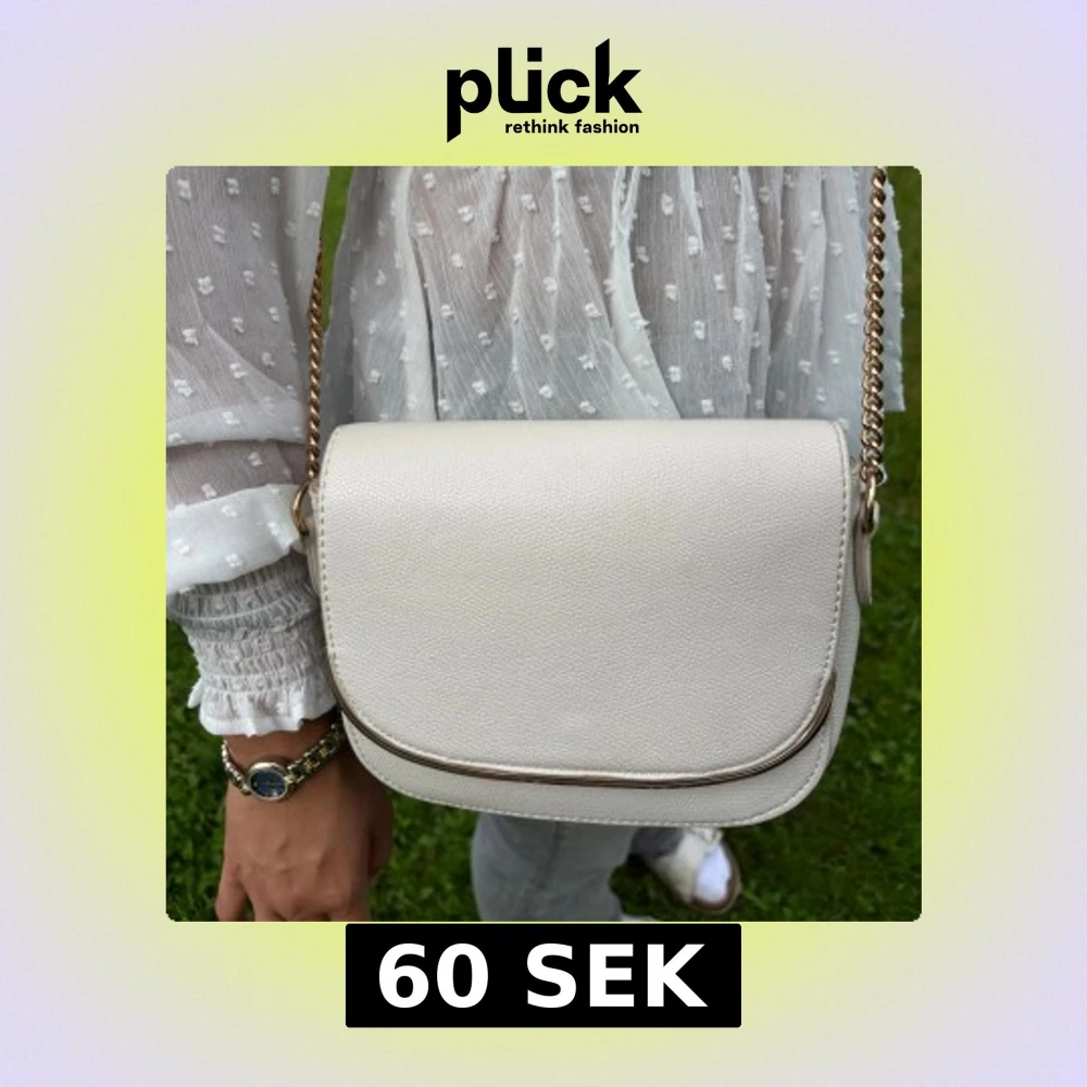 Jättefin vit axelväska i skinnimitation med guldfärgad kedja från HM. Väskan är använd men har ett bra skick. Skriv om ni har frågor💓
