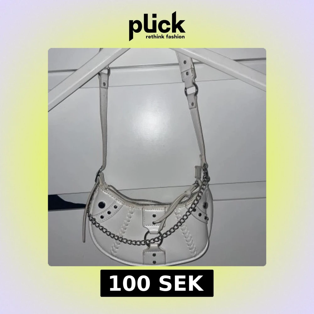 Snygg vit axelväska med coola kedjedetaljer och nitar. Väskan har en dragkedja upptill och justerbar axelrem. Perfekt för att ge din outfit en edgy touch.