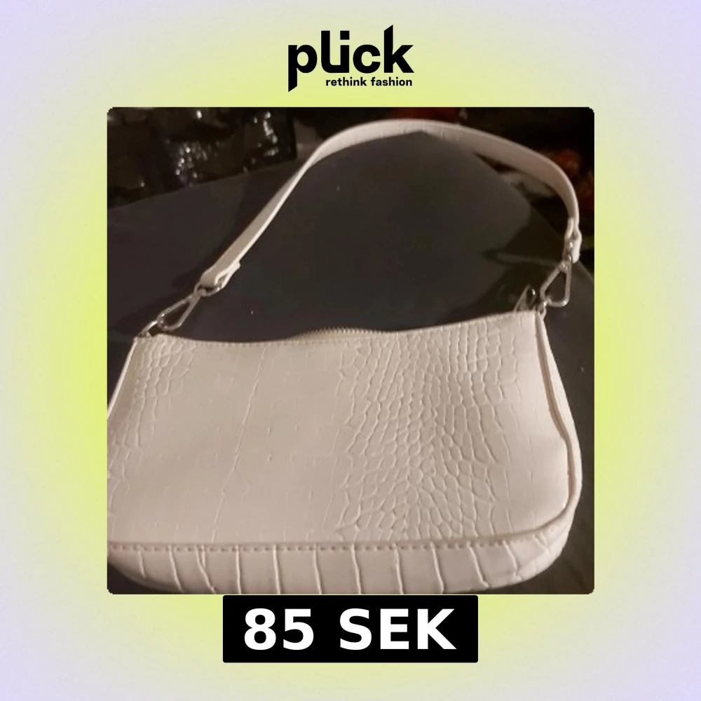 Snygg vit axelväska med krokodilmönstrad yta och silverfärgade detaljer. Väskan har en stilren form och dragkedja upptill. Perfekt för att lyfta din outfit med en trendig touch.