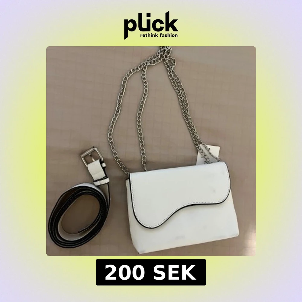 Säljer en stilren vit axelväska från Mango med silverfärgad kedjerem. Funkar både som magväska och axelväska