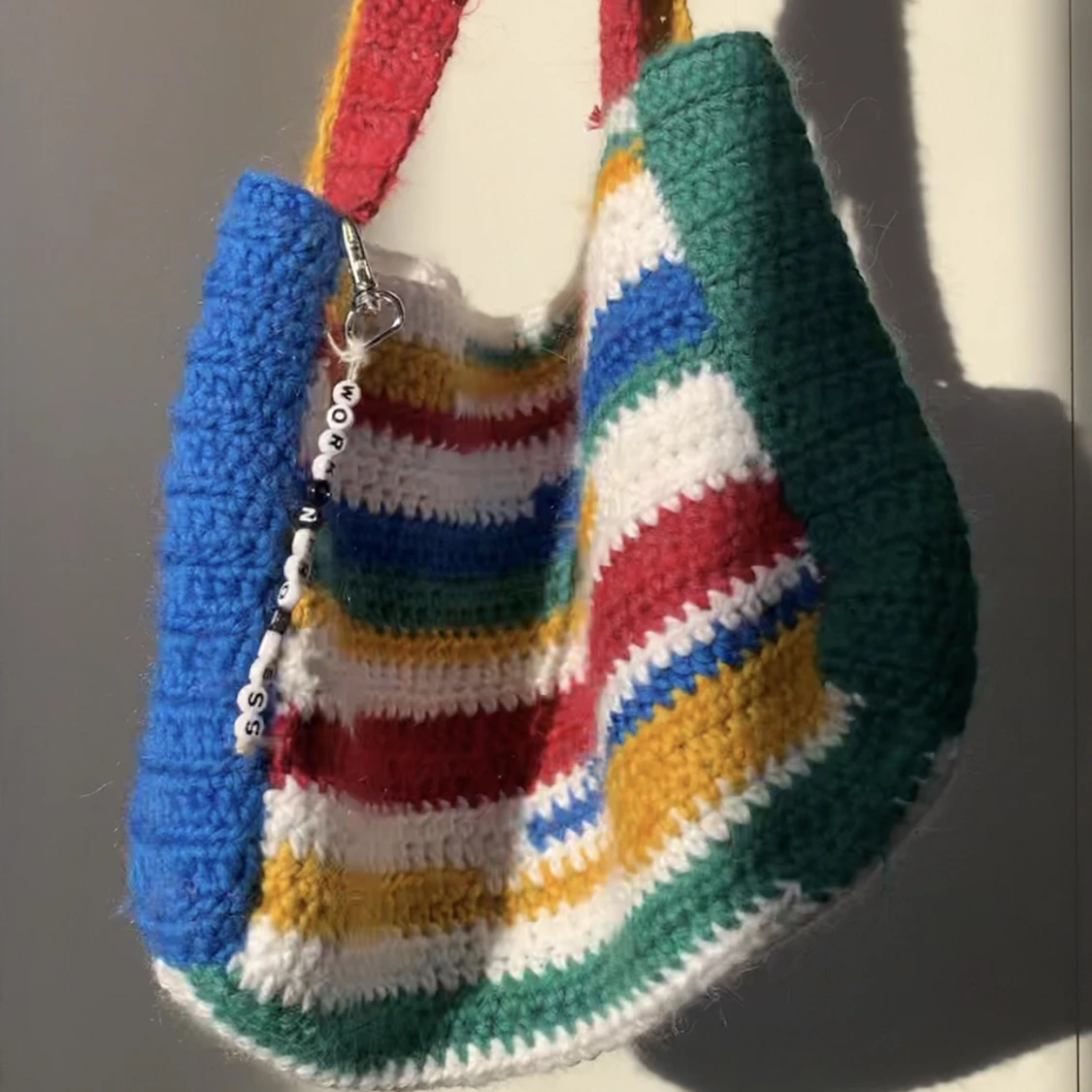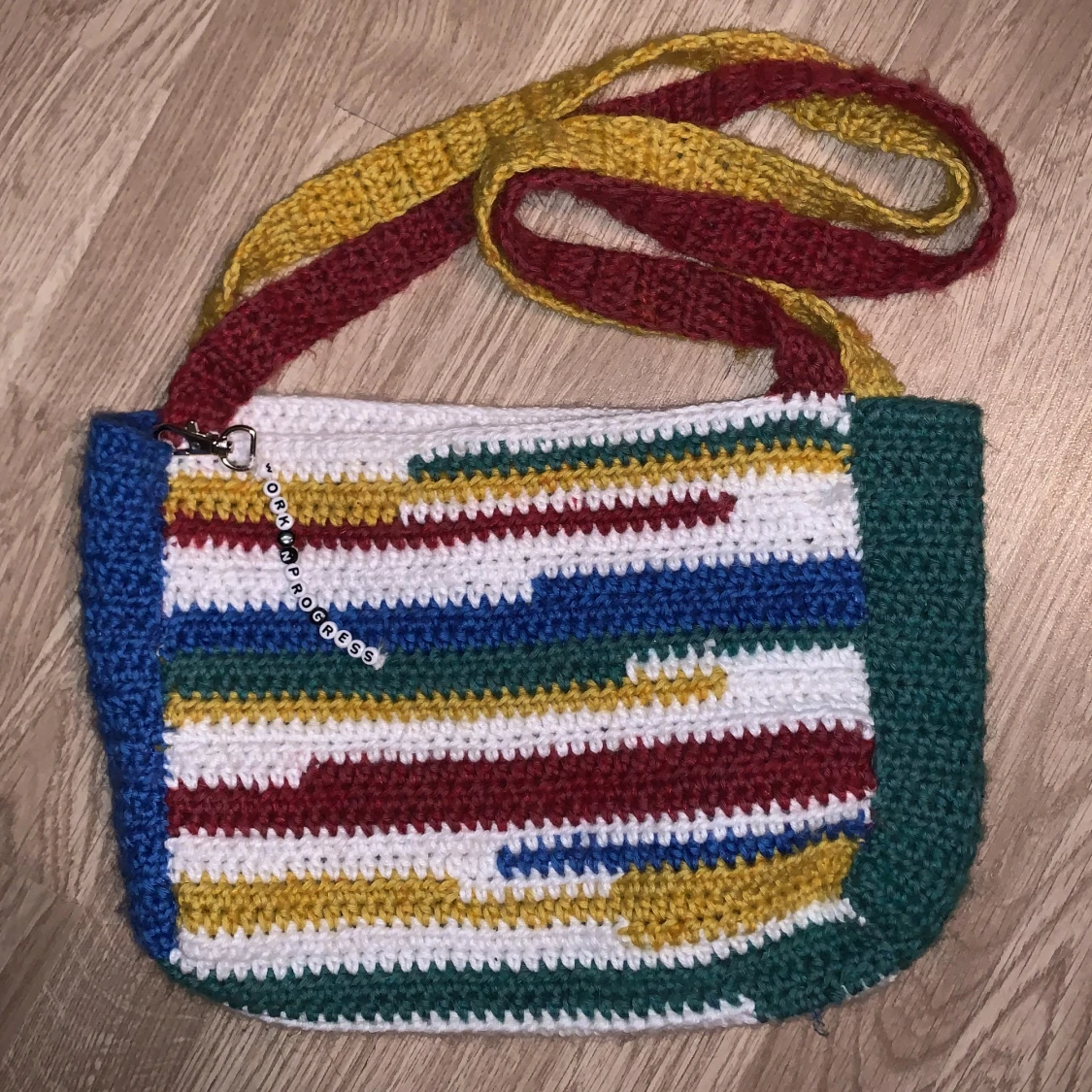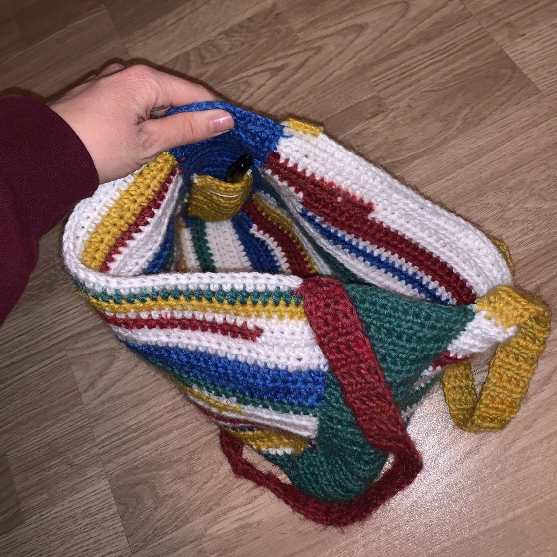Virkad väska, handmade with cotton yarn and a strand of a mohair/aryclic/polymide blend :) Very durable fabric! Fun colors! Please message with any questions!!