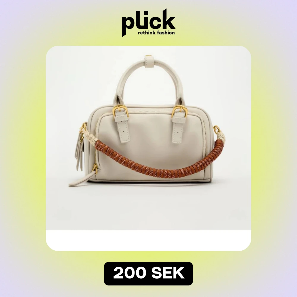 Helt nytt, aldrig använt! Snygg vit handväska i skinn med en unik flätad axelrem i brunt och beige. Väskan har guldfärgade detaljer och en praktisk dragkedja. Perfekt för både vardag och fest!