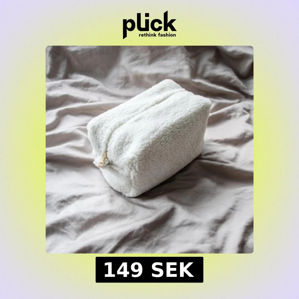 Köp sker via chatten och inte direkt på annonsen. Superfin och mjuk necessär i vitt teddy tyg med guldfärgad dragkedja. Perfekt för att förvara smink, hudvårdsprodukter eller andra småsaker när du reser eller hemma på sminkbordet.
