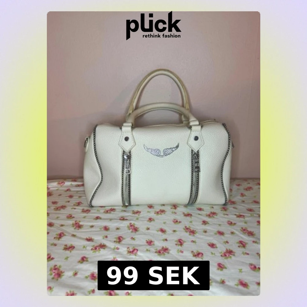 Jättefin off-white handväska med små änglavingar på framsidan🪽Hade behållt den själv om jag inte redan hade en väska </3