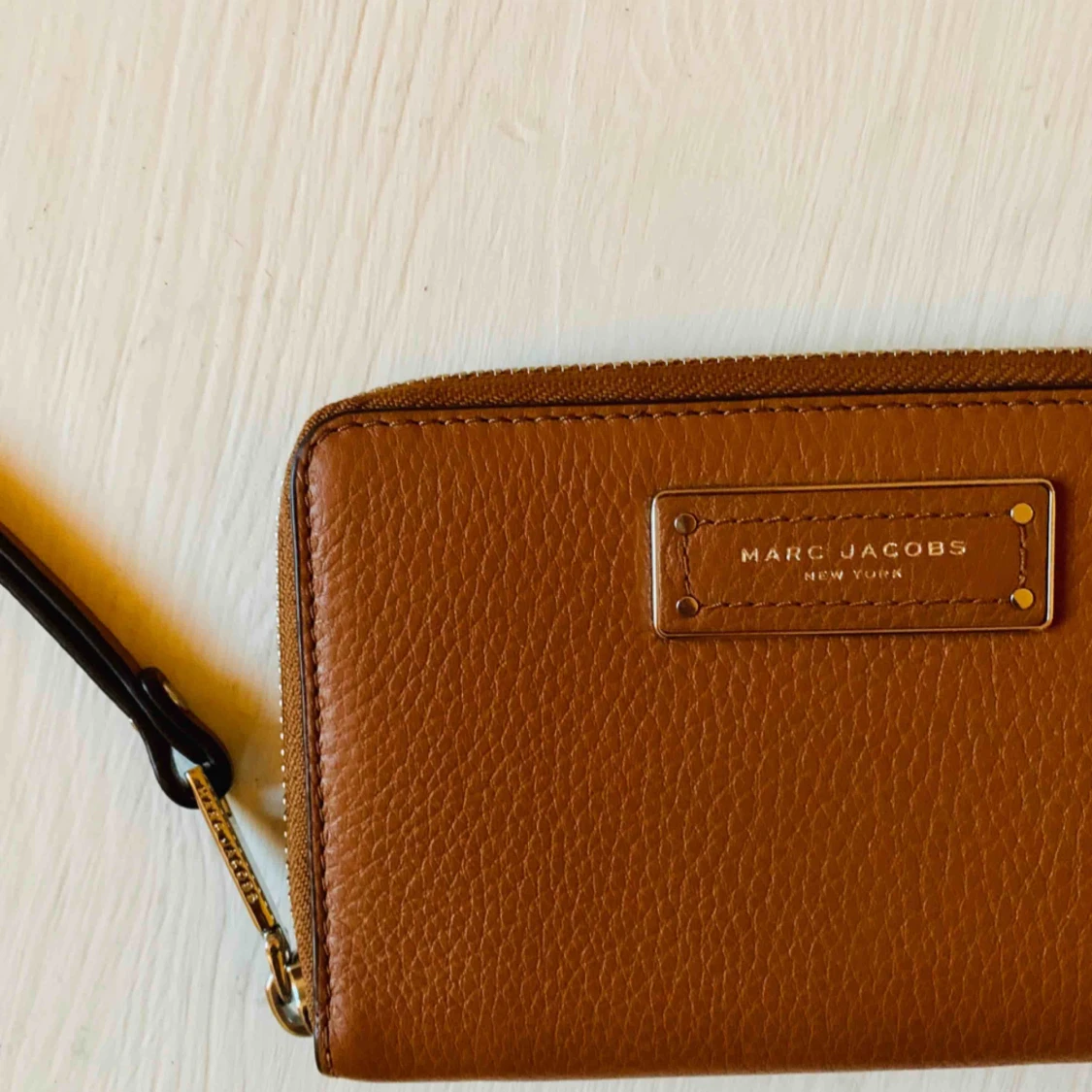 Ljusbrun wristlet plånbok från Marc Jacobs. iPhone 8 får plats i mobil facket. Använd 2 gånger.
