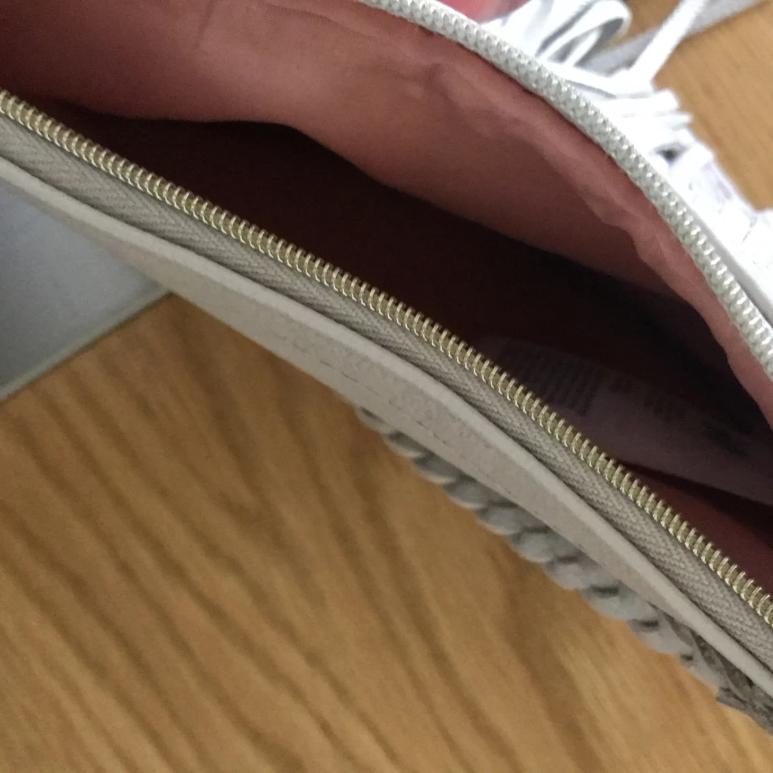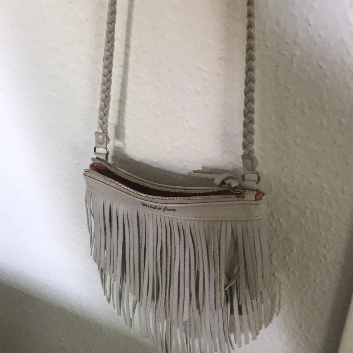 Väska med snöre som går ungefär en bit nedanför höfterna på mej som är ca 170 lång.