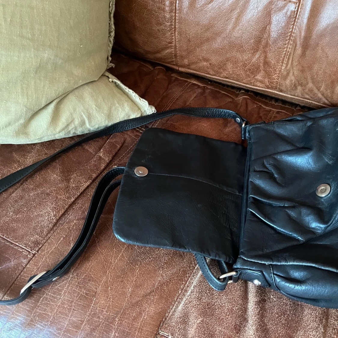 Svart snygg axelrämsväska! Så rymlig med många fack 💕