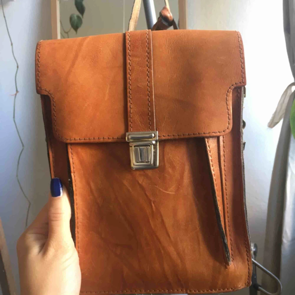 Jättefin brun axelremsväska i läder. Inköpt på loppis och i toppenskick. Finns litet ytterfack för ex. busskort och ryms mobil plånbok och lite till i själva väskan.