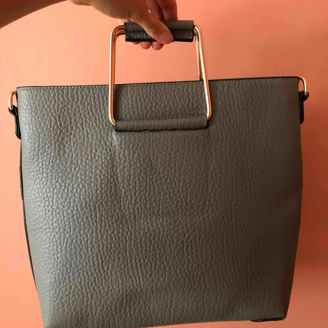 Ny väska i skinnimitation. Grå med gulddetaljer. Många fack inuti, aldrig använd. Mötas upp i Uppsala eller frakt 60 ⭐️⭐️⭐️
