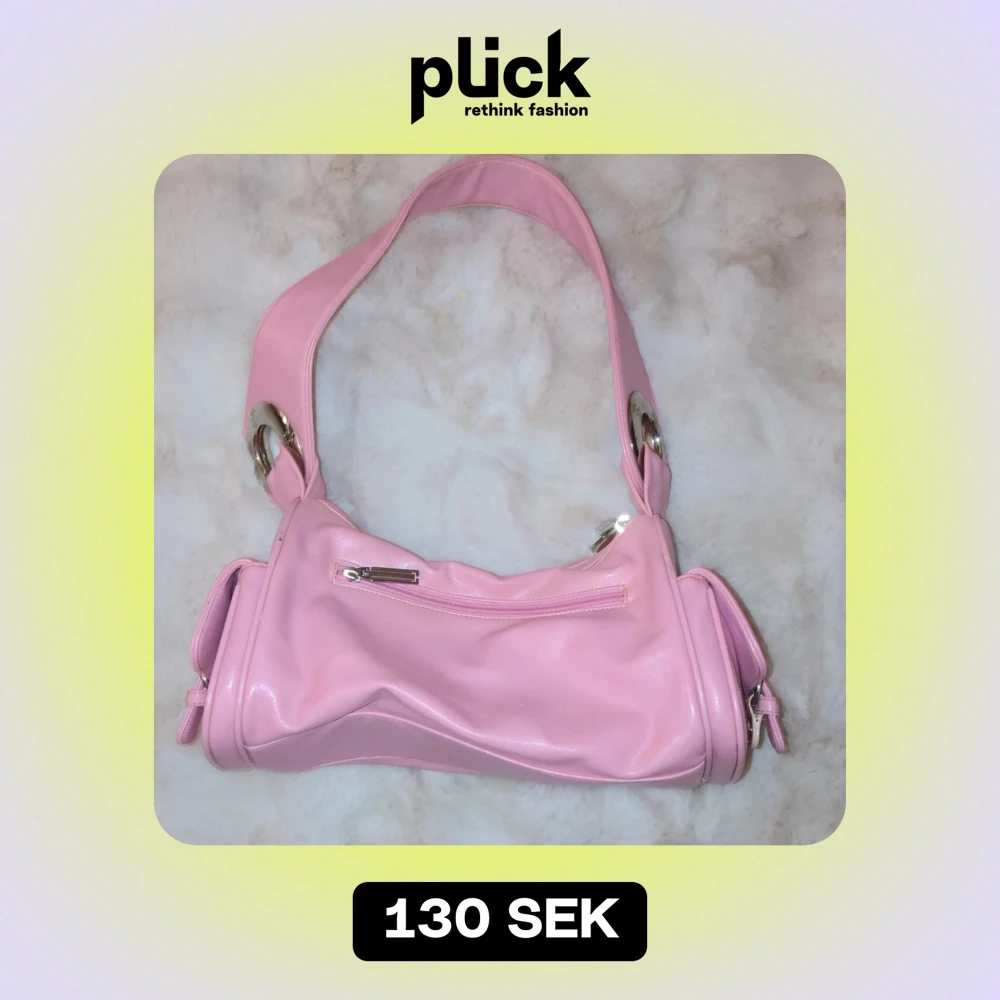 Säljer en superfin rosa axelväska i syntetmaterial. Väskan har en cool design med stora silverringar och en praktisk dragkedja framtill. Perfekt för att liva upp vilken outfit som helst! 💖