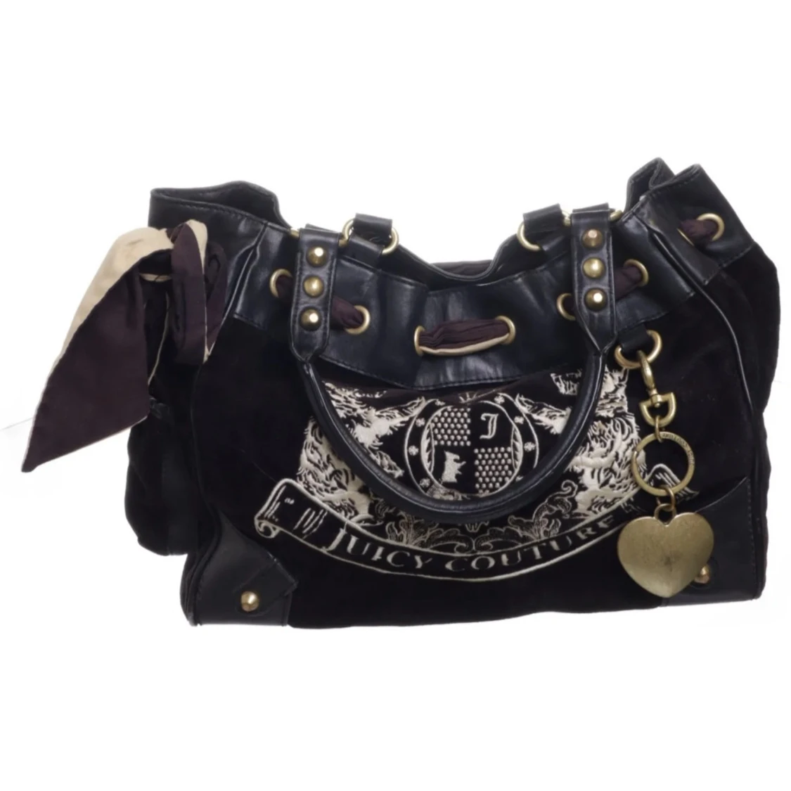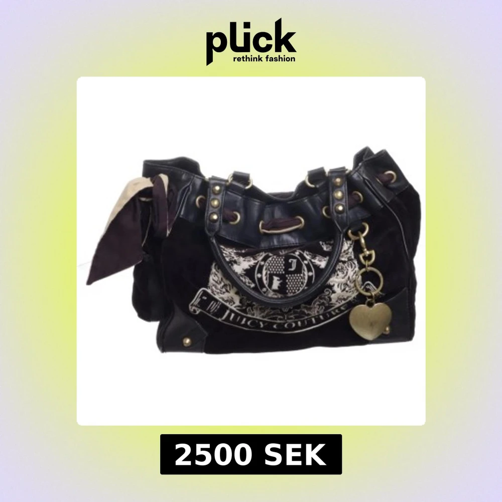Snygg vintage handväska från Juicy Couture. Väskan är lite sliten undertill och har några småfläckar i innefodret, annars i väldigt bra skick!