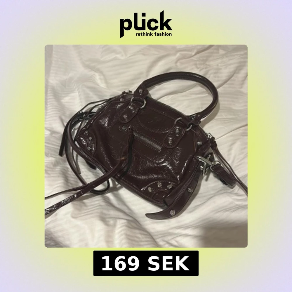 Snygg vinröd handväska i glansigt skinn med coola silverfärgade nitar och detaljer. Väskan har både handtag och axelrem, samt dragkedja upptill och en mindre ficka framtill. Insidan är beige och rymlig. Vid frågor kontakta mig!💞