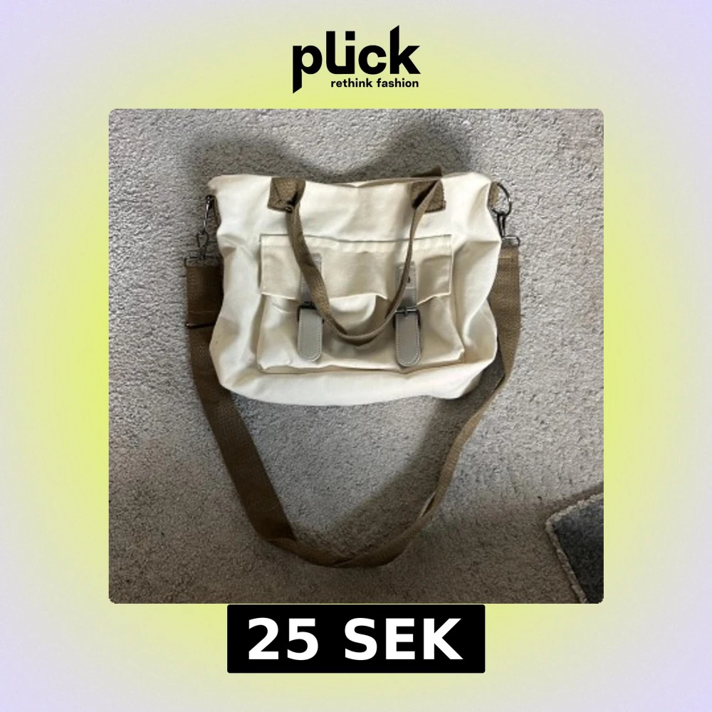 Säljer en beige axelväska med bruna (grönbruna?) handtag och axelrem från shein. Väskan har två spännen framtill och ett stort huvudfack med brun insida. Den har även ett litet fack inuti. Perfekt för att bära med sig det viktigaste till vardags.