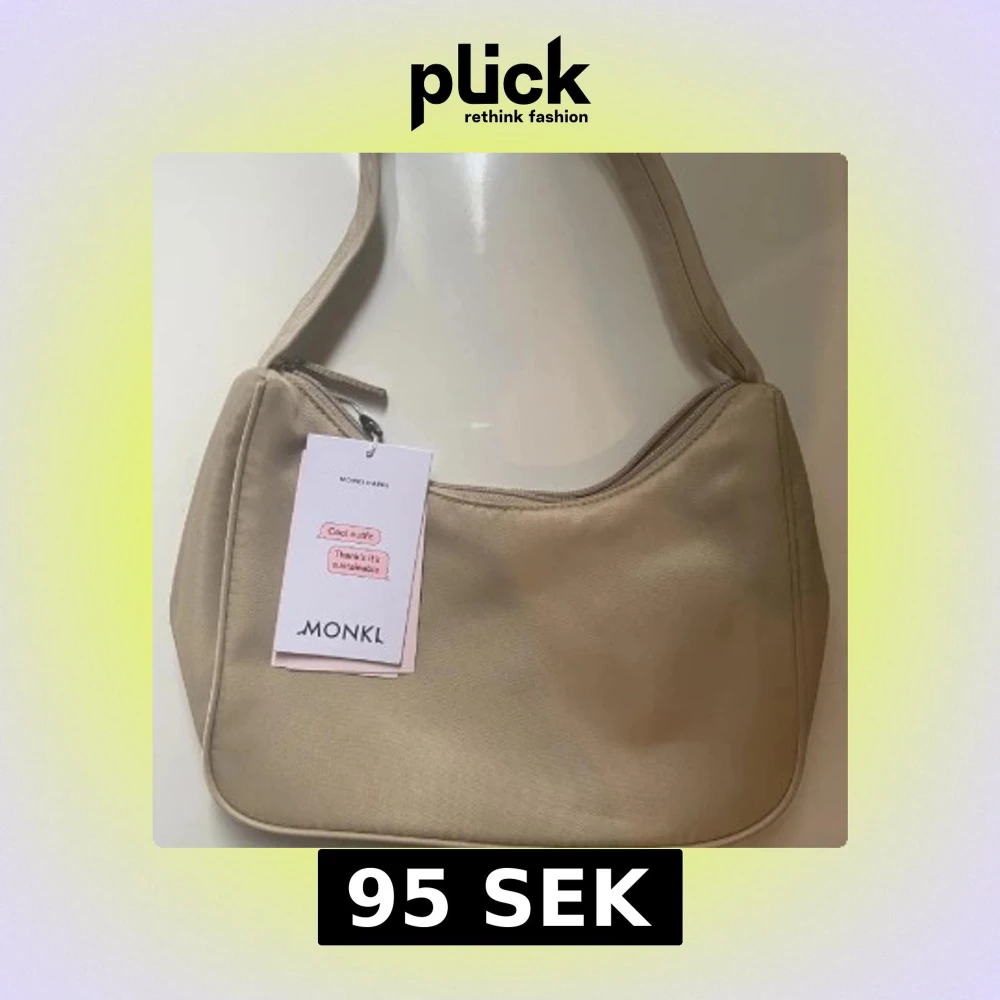 Snygg beige axelväska från Monki med stilren design och praktisk dragkedja upptill. Väskan har en mjuk, rundad form och är tillverkad i slitstark polyester. Perfekt storlek för att bära med sig det viktigaste och passar till många olika looks. Helt ny. Oanvänd! ☺️