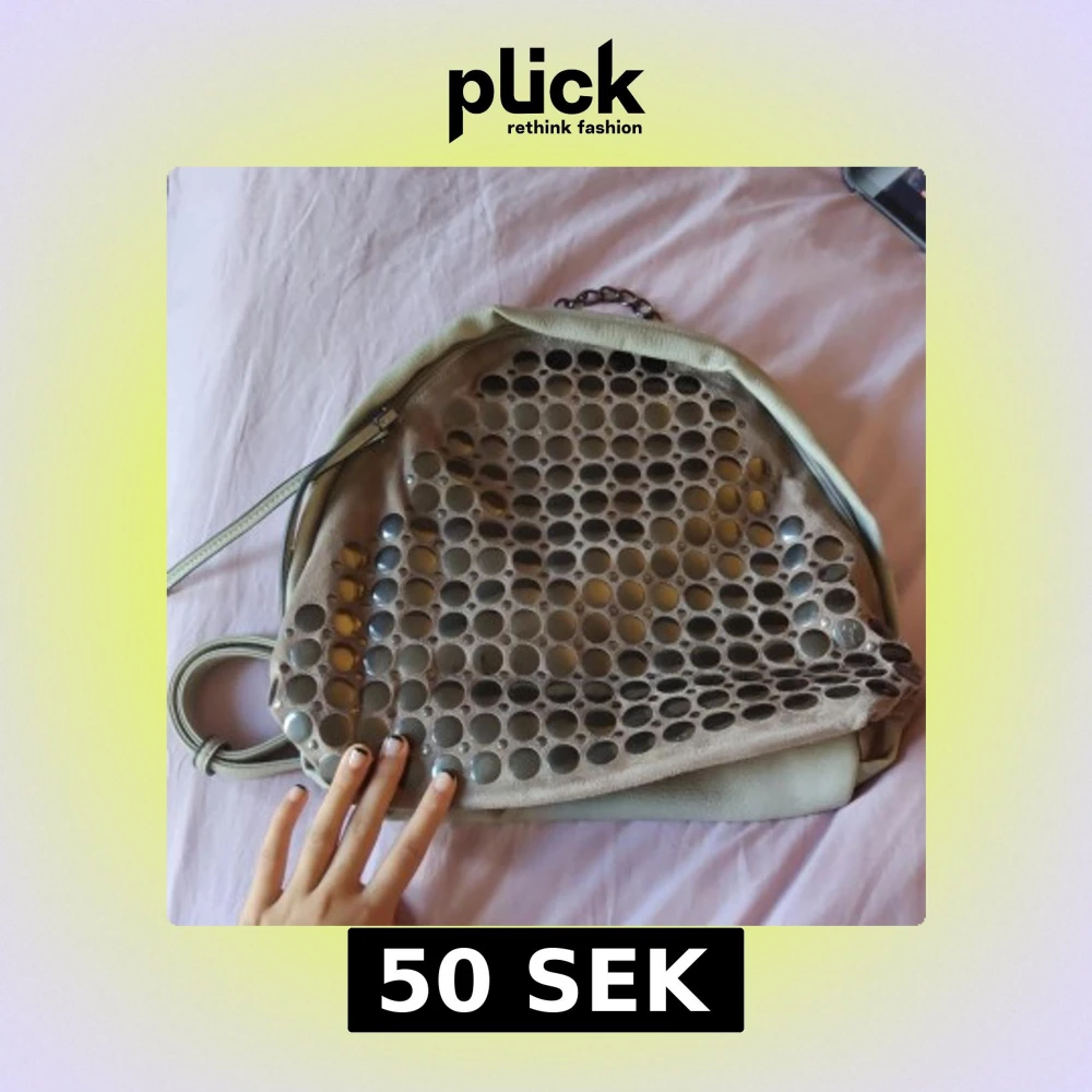 Snygg beige ryggsäck från Emily & Noah med coolt cirkelmönster i grått på framsidan. Väskan har justerbara axelremmar, dragkedja och en kedjedetalj upptill. Materialet är mjukt syntetläder som känns lyxigt och stilrent. Skriv för frågor eller fler bilder 💕