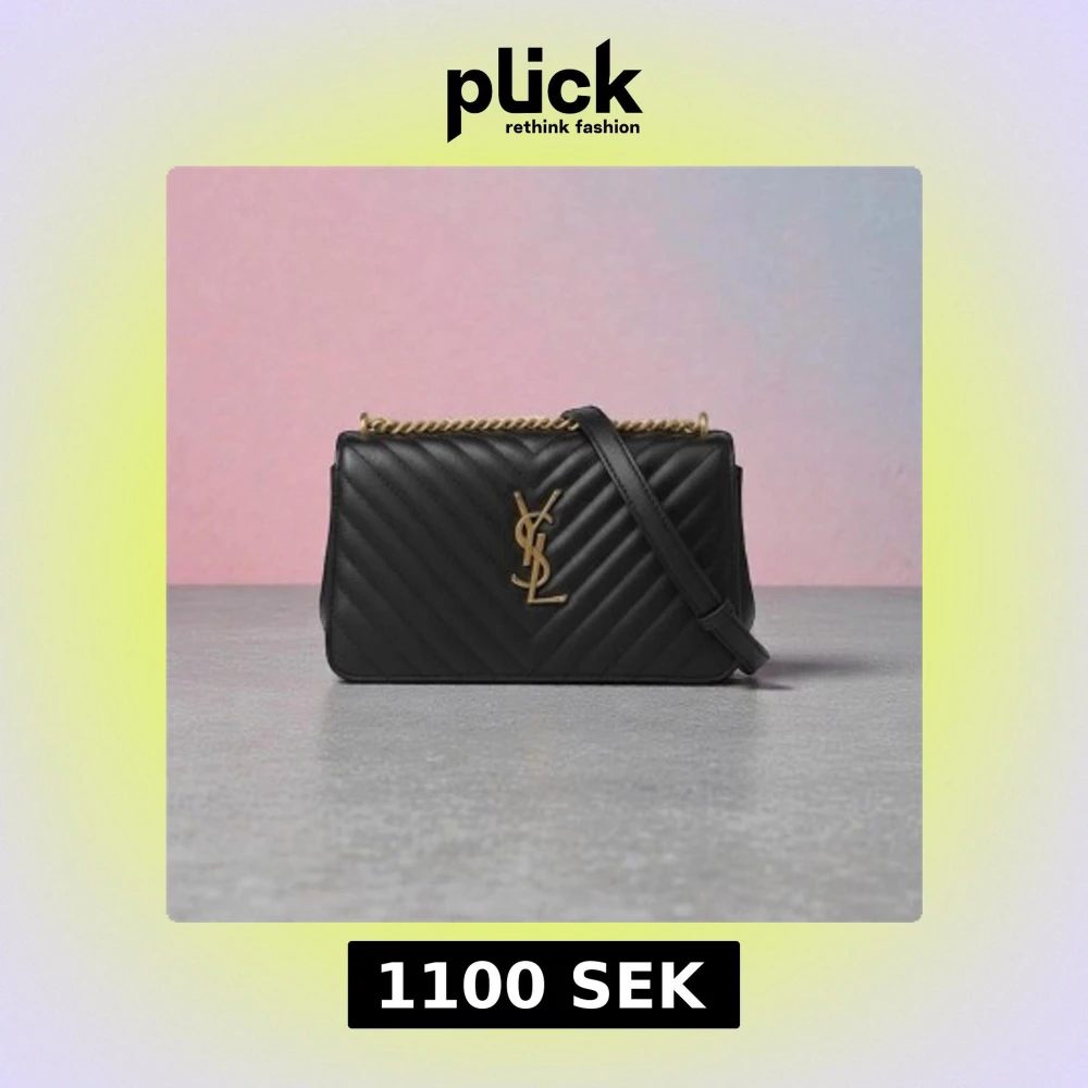 Snygg svart axelväska från YSL i quiltat skinn med guldiga metalldetaljer och kedjerem. Väskan har klassisk rektangulär form, ikonisk YSL-logga framtill och stilren design som lyfter varje outfit.