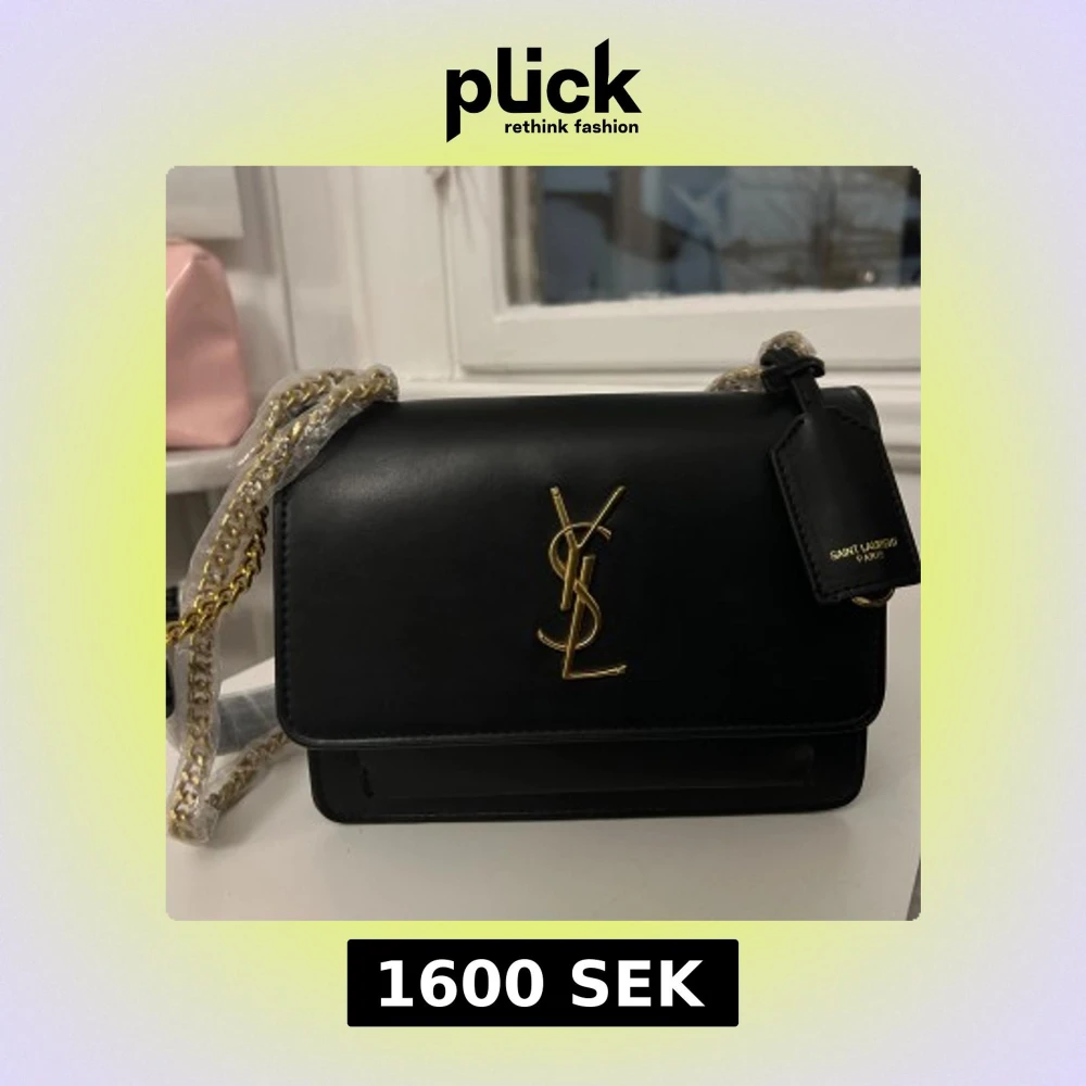 Elegant svart axelväska från Saint Laurent i skinn med guldfärgad YSL-logga på framsidan. Väskan har en kedjerem och ett magnetiskt knäppe. Perfekt för att ge en lyxig touch till din outfit.