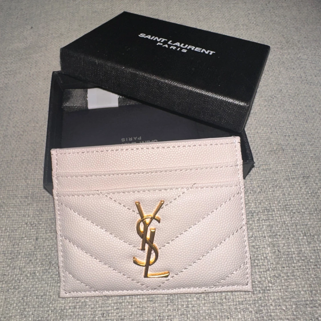 Supersnygg ljusrosa plånbok från Saint Laurent med klassiskt YSL-emblem i guld framtill. Plånboken är quiltad och har flera kortfack. Tillverkad i exklusivt skinn och levereras med originalask. Perfekt accessoar för dig som gillar lyxiga detaljer.