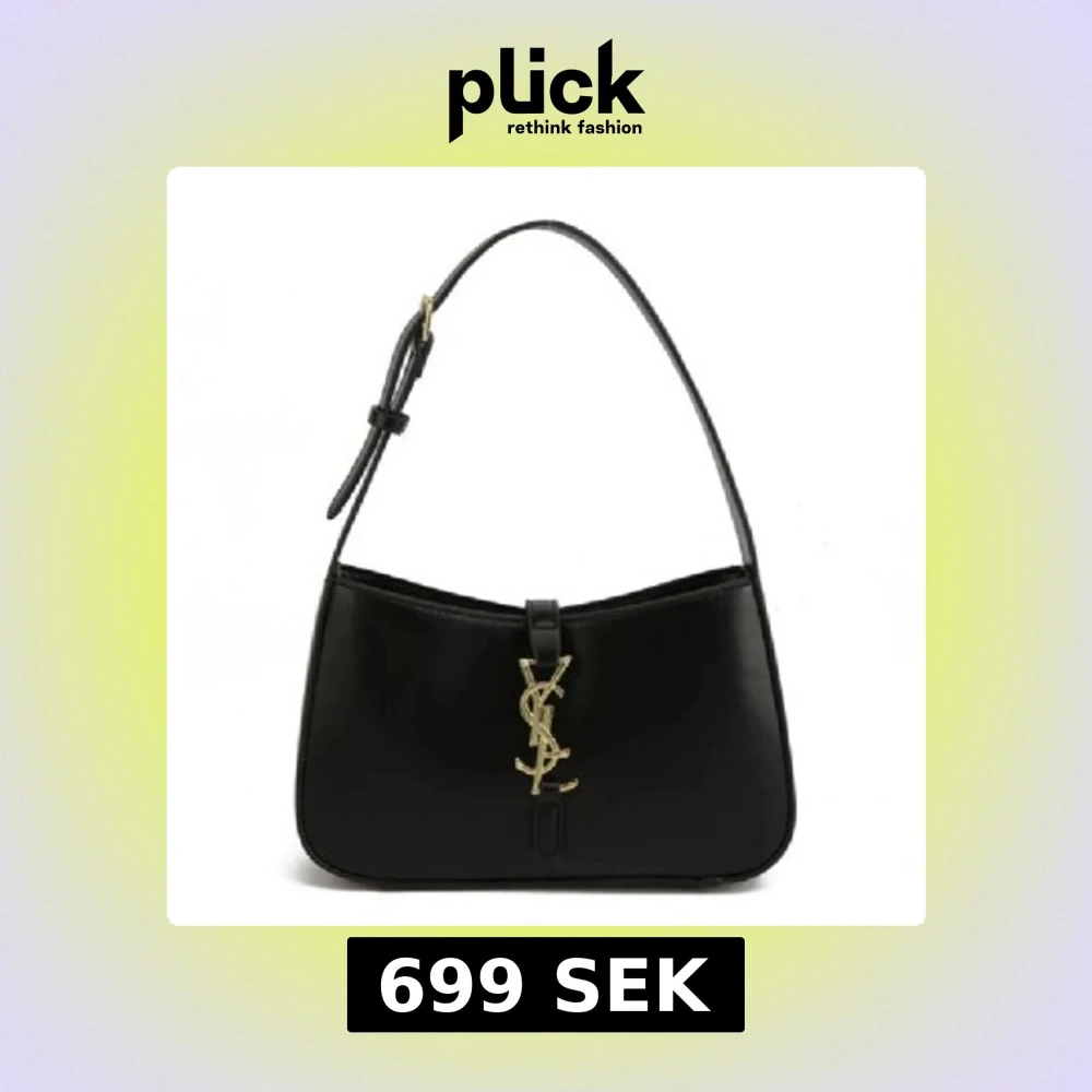 Snygg svart axelväska från YSL i slätt skinn med justerbart axelband och ikoniskt guldigt YSL-logo framtill. Väskan har dragkedja upptill och stilren, avlång form som ger en lyxig vibe. Perfekt för dig som vill ha en klassisk och trendig accessoar.