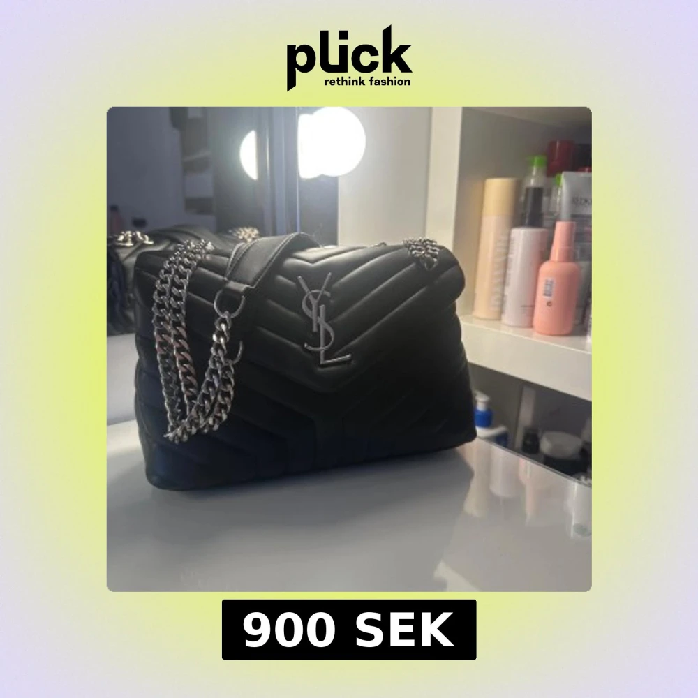Snygg svart axelväska från Saint Laurent med quiltad design och silverfärgade kedjedetaljer. Väskan har ett stort YSL-emblem på framsidan och en praktisk dragkedja inuti. Perfekt för att ge en lyxig touch till din outfit.
