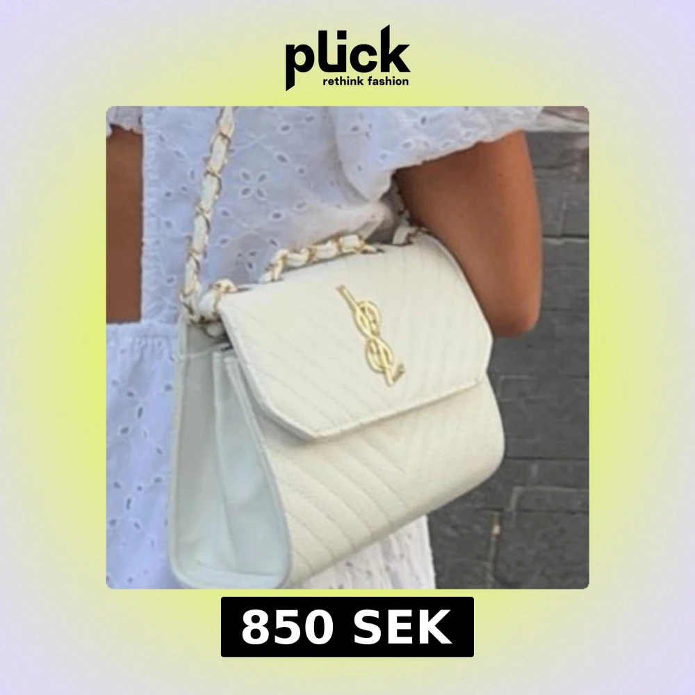 Säljer en stilren vit axelväska från Yves Saint Laurent med guldfärgad logga framtill. Väskan har quiltad design och kedjerem med inslag av vitt material. Perfekt för att lyfta din outfit!